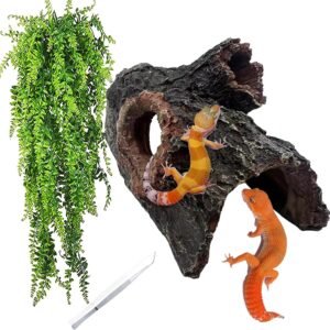 MUYG Log Reptile Hide,Corner Resin Reptiles hides and Caves Lizard Hideout Tank Accessories Habitat Decor Snake Hideaway for Lizards Chameleon Snakes Gecko Turtle Spider Axolotl