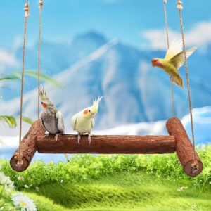 Extra Large Bird Perch Swing Toy, Natural Pine Wood Parrot Stand, Hangable Birdcage Accessory with Hemp Rope, Bird Chewing Toy for Parrot Parakeet Budgies Lovebirds – 20 × 10 Inches