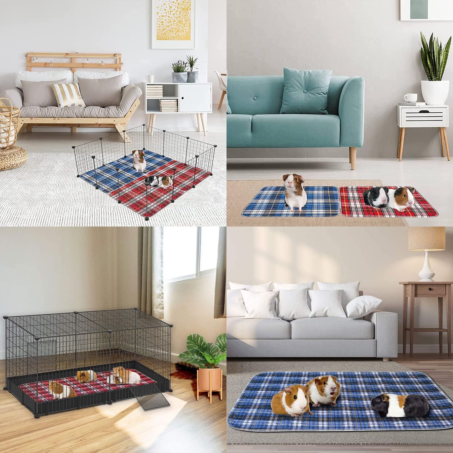 ღ【Guinea Pig Cage Liner】 60*45cm(23.4*17.55inch)/90*60cm(35.4*23.4inch)/120*90(47.3*35.4inch)and(1 blue plaid & 1 red plaid),Material: polyester fabric, very soft. Machine washable, strong water absorption, waterproof bottom, no water seepage to protect the floor.