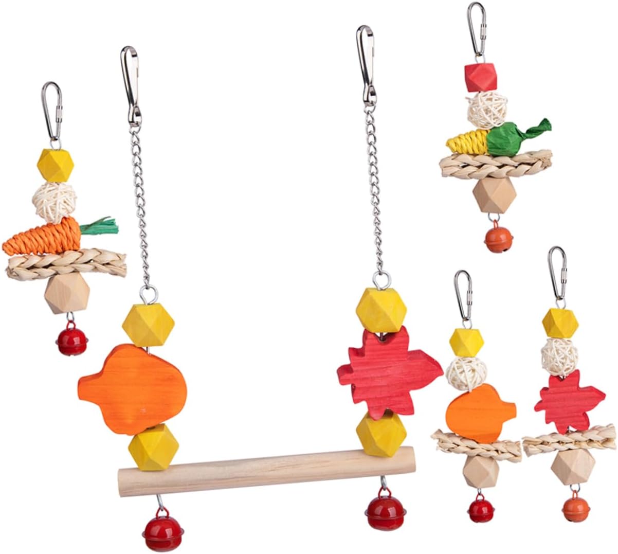 4 Sets Parrot Toy Set Bird Toys Parrot Training Toys Budgie Chew Toys Bird Cage Decor Parrot Toys Parrot Perch Parakeet Toy Parrot Cage Toy Cockatiel Toys Hanging Swing Toy Wooden BESPORTBLE