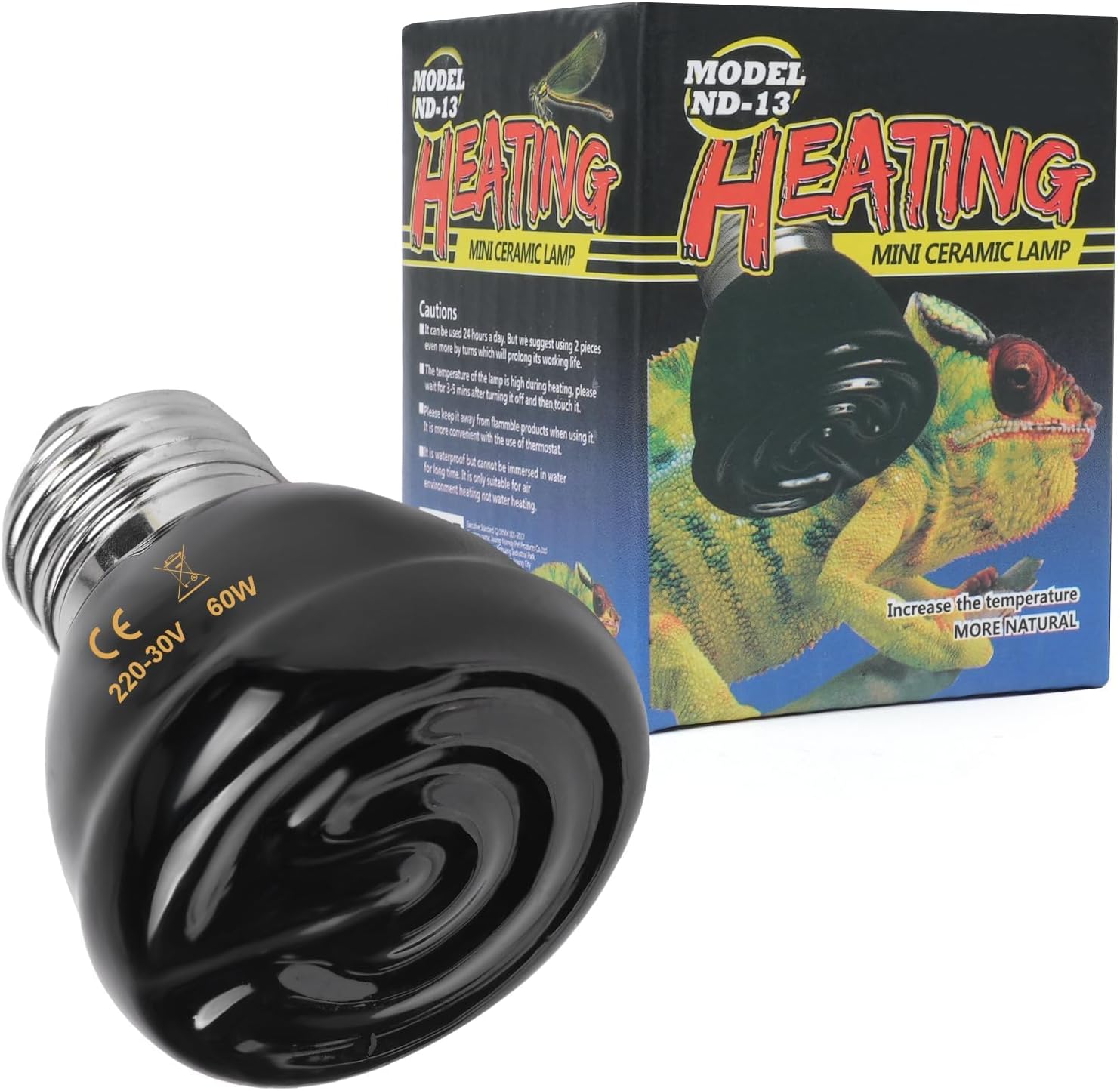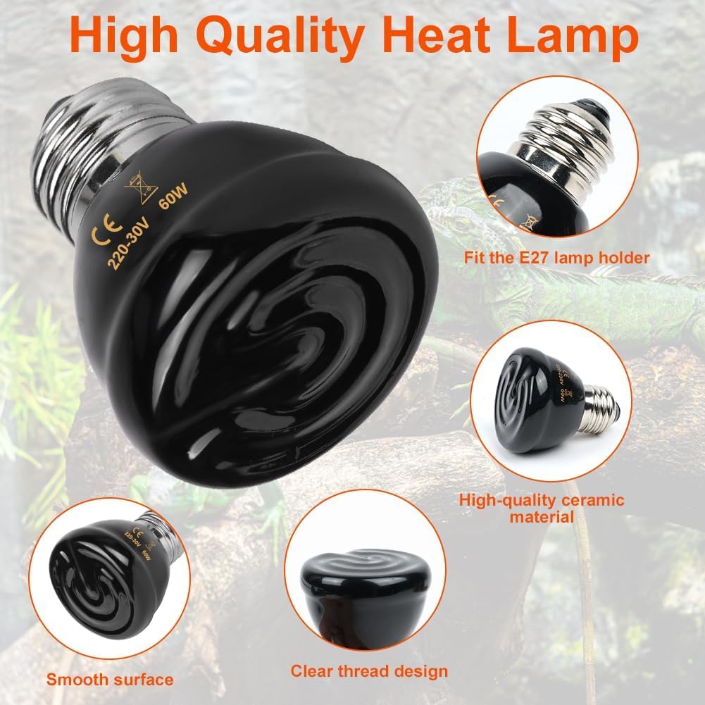 Adiwo Tortoise Heat Lamp, 60W Ceramic Heat Emitter, E27 Reptile Heat Lamp Bulb, Winter Infrared Heating Bulb, 220-230V Terrarium Reptile Heat Bulb for Reptiles/Snakes/Lizards/Turtles/Bearded Dragons