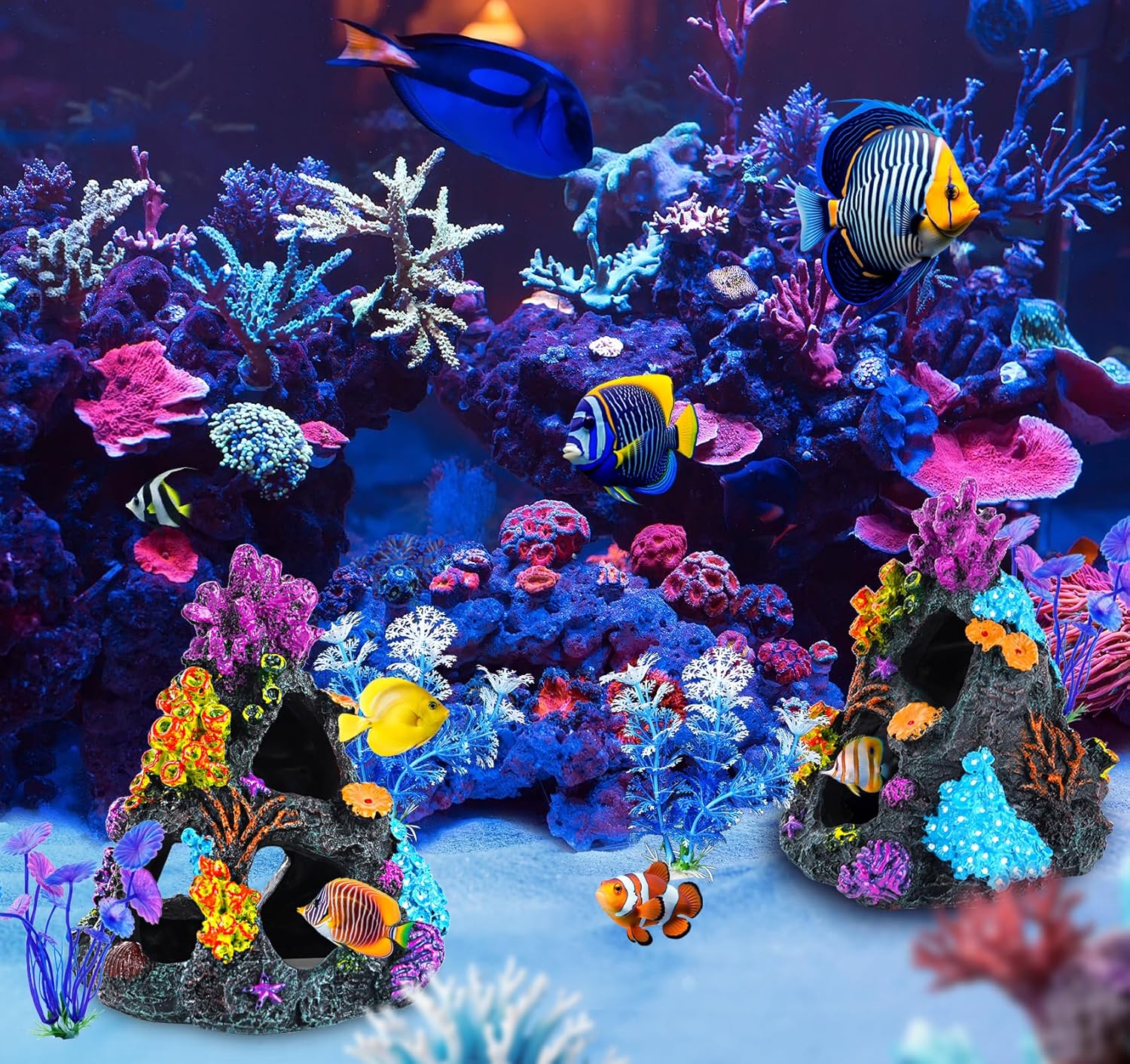 Binswloo Fish Tank Decorations, Coral Reef Aquarium Decor Ornaments, 2 Aquarium Plants for Fish Tank Decoration Accessories