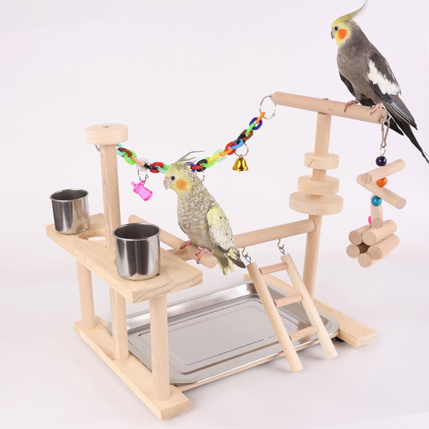 Bird Swing Parrots Cage Toy Wooden Swing With Toy Tray Feeding Cups Training For Small Size Birds Parrots