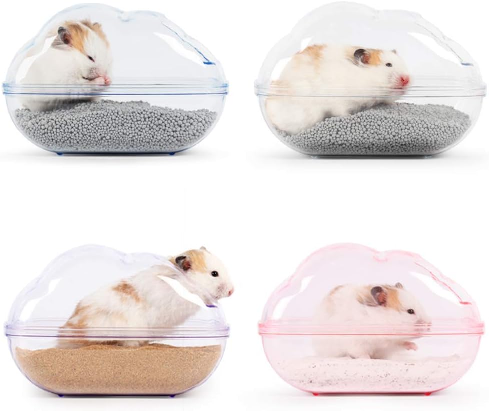 BUCATSTATE Large Hamster Sand Bath Container Transparent Clouds Hamster Bathroom with Scoop Set for Small Pet Animals Cage Accessories (L-BLUE)