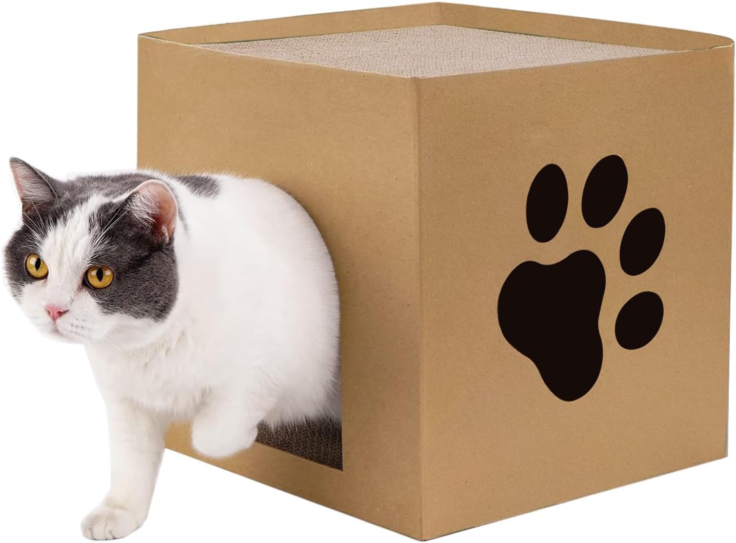 Cat Cardboard Scratcher, Cat Cardboard House with Scratch Pads Cat Box Cat Bed for Indoor, Hideout for Cat Rabbit Bunny Small Animals (30x30x30cm)