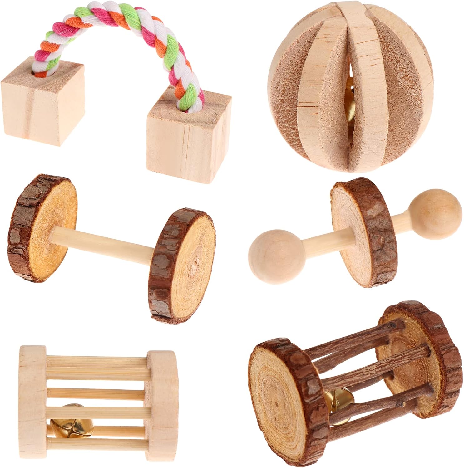 CCCYMM 6 Pcs Pet Natural Wooden Chew Toys Dumbells Exercise Bell Molar Toy for Parrot, Rabbit, Chinchilla, Guinea Pig, Hamster Small Animals