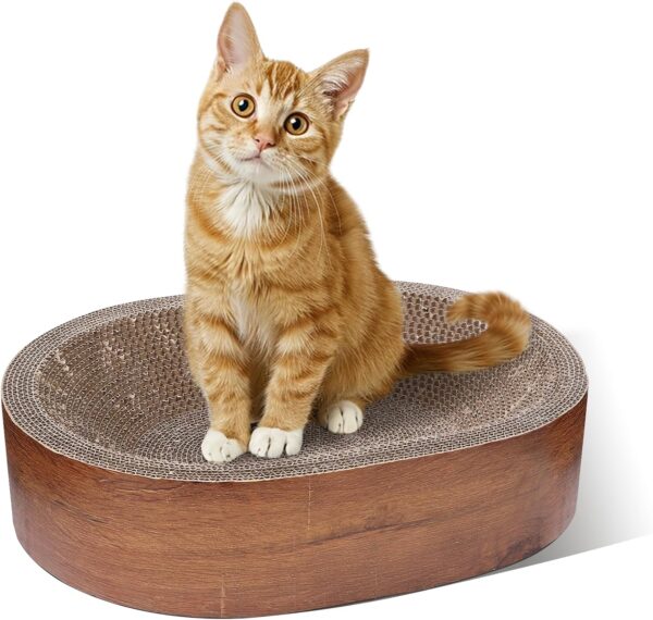 ComSaf Cat Scratcher, Oval Corrugated Cardboard Scratch Pad, Round Cat Scratching Lounge Bed, Durable Recycle Board for Furniture Protection, Cat Scratcher Bowl, Cat Kitty Training Toy Reversible