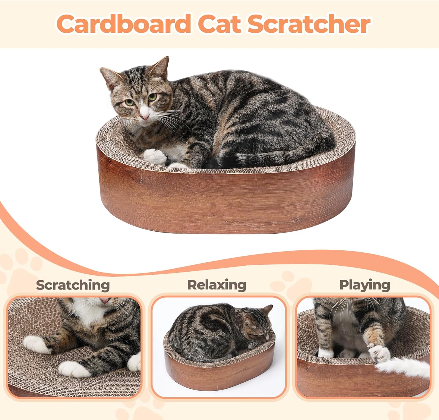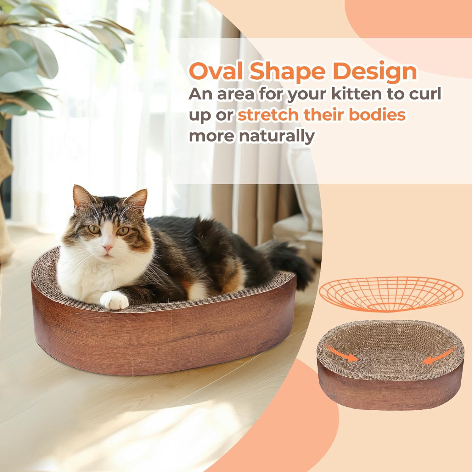 ComSaf Cat Scratcher, Oval Corrugated Cardboard Scratch Pad, Round Cat Scratching Lounge Bed, Durable Recycle Board for Furniture Protection, Cat Scratcher Bowl, Cat Kitty Training Toy, Playing