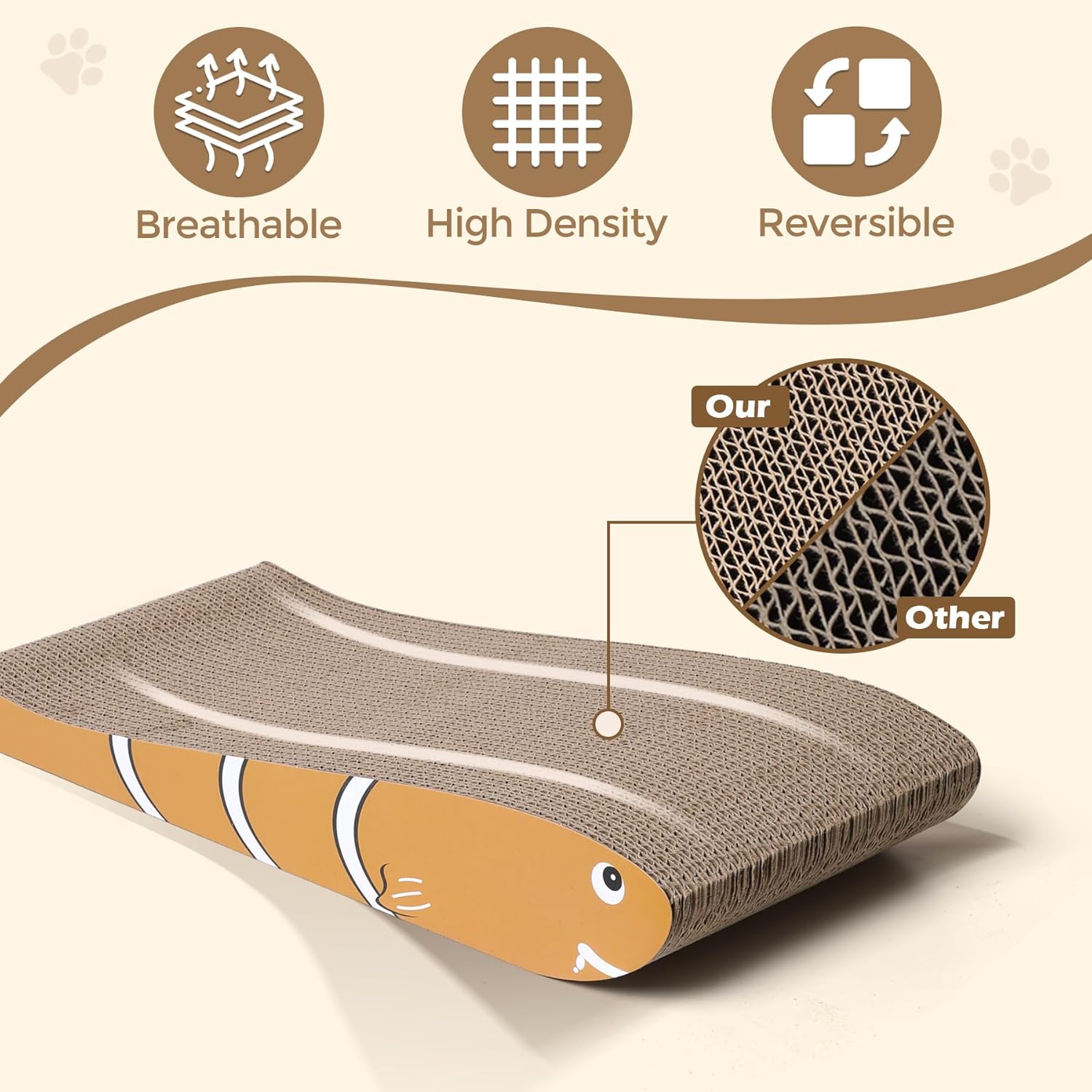 [High-Density Cardboard] This scratching pad withstands the rigor of daily use, providing your cat with a long-lasting scratching surface. The dense cardboard offers a satisfying texture that cats love to dig their claws into, which helps to keep their claws healthy and sharp.