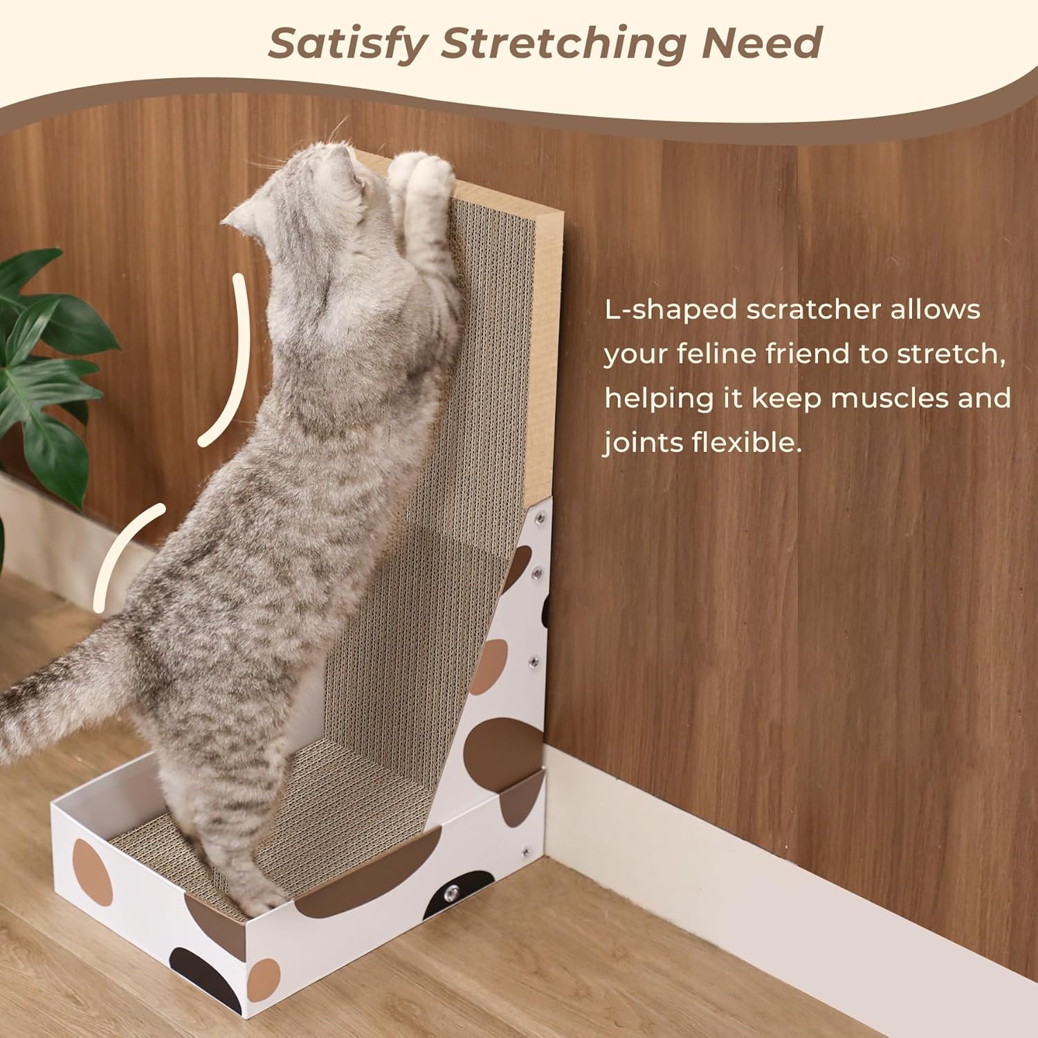 [Vertical Space-Saving Design] The L-shaped cat scratcher makes better use of limited indoor space without sacrificing cat scratching experience since it can fit more conveniently into corners or against walls, allowing cats to fully extend their bodies and claws.