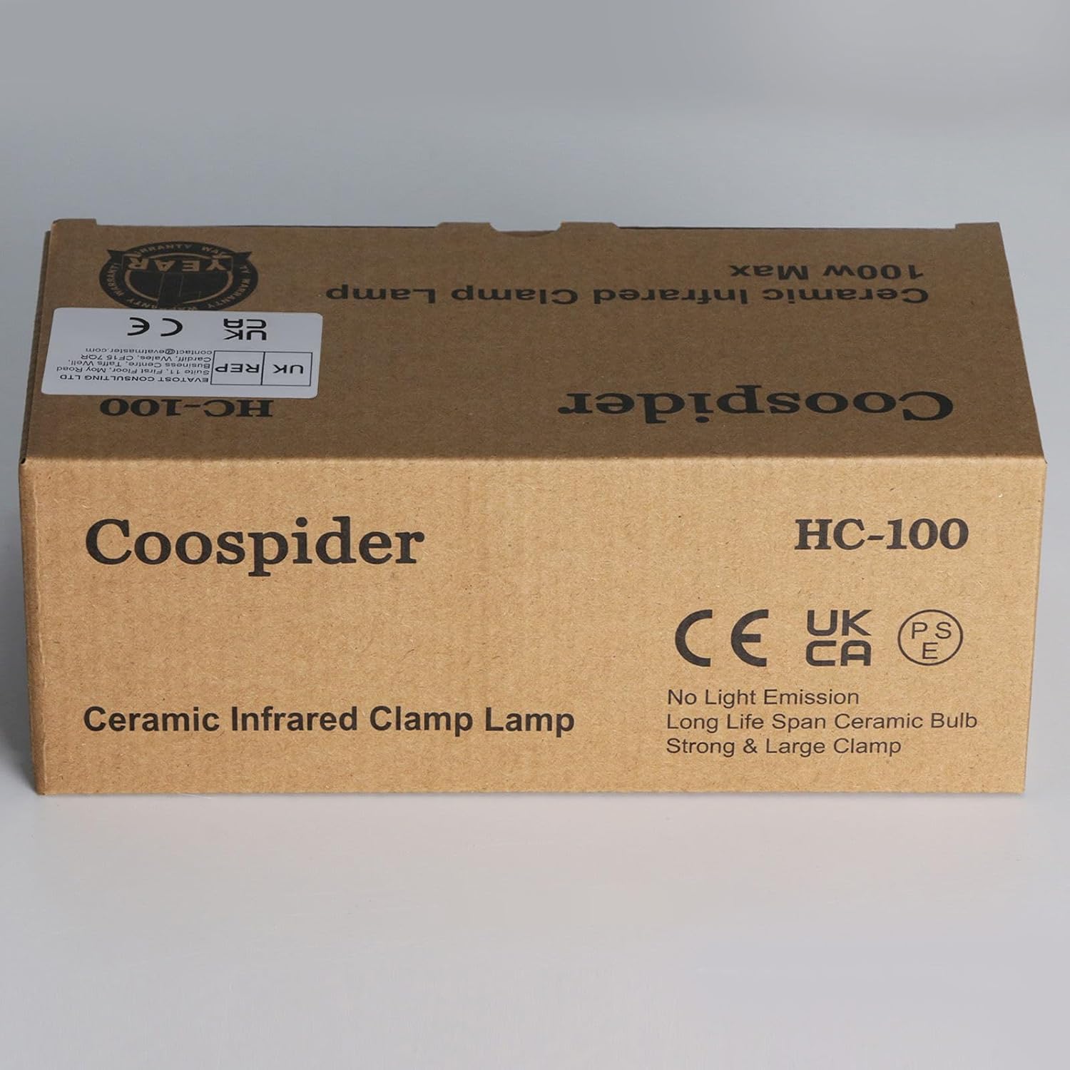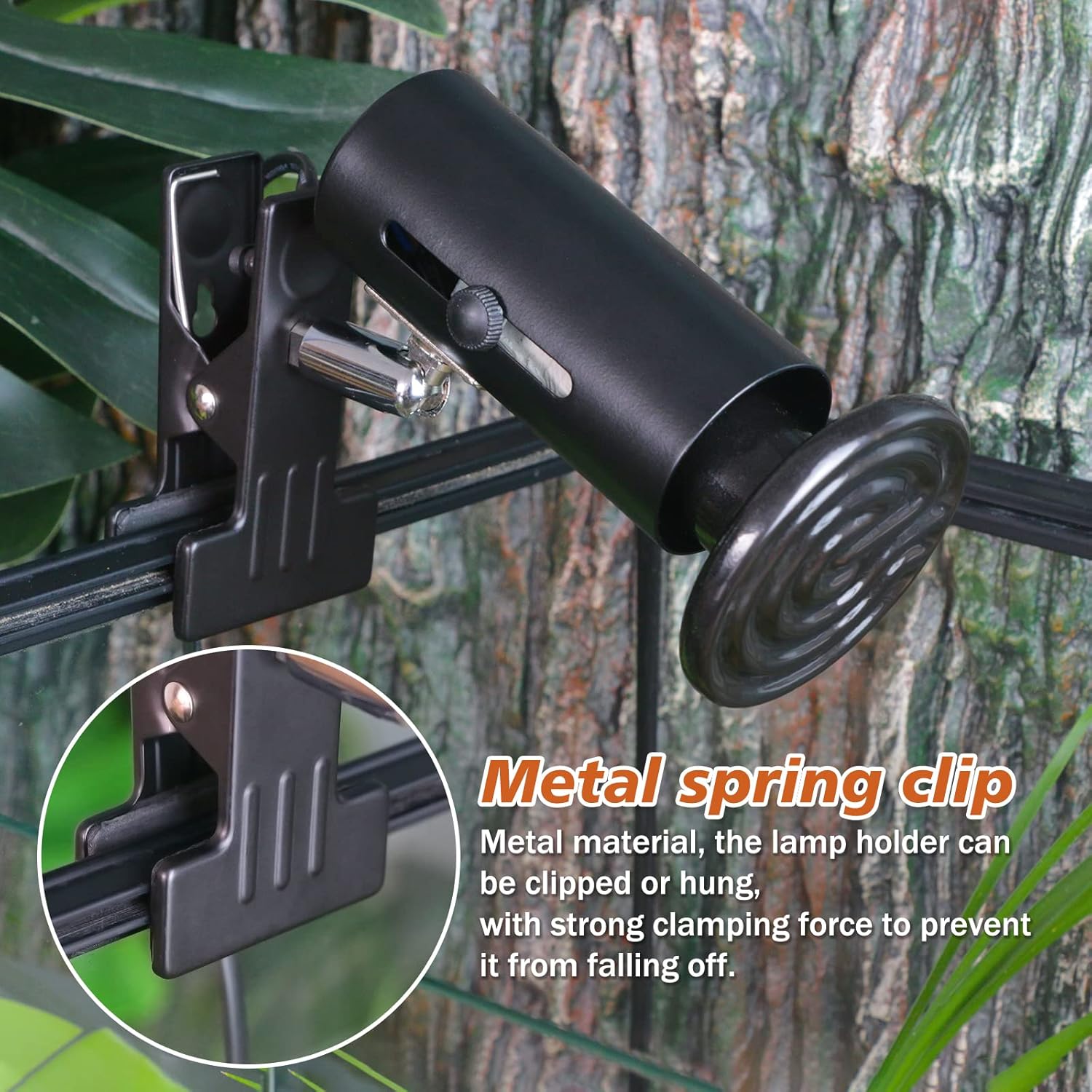 Coospider Reptile Tortoise Heat Lamp with Metal Clamp, 100W Ceramic Heat Bulb Holder, E27 No Light Infrared Basking Lamp for Terrarium/Vivarium/Lizards/Turtle/Snakes/Chicks/Puppies