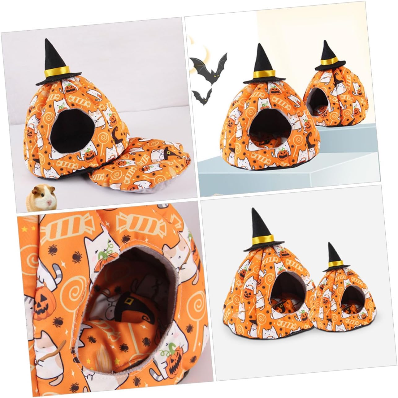 rat bedding Designed for small pets to rest, sleep, play.chinchilla pumpkin nest Compact size, suit to put it at any place.parrot nest It also can be placed in the corner of the cage, sure to give you a pleasant using experience.small animal house Super lovely appearance, charming and energetic, your pet will like it, greatly attracting pets’ attention