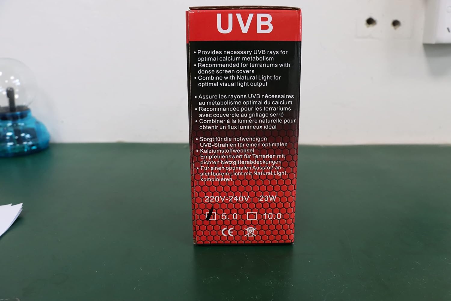 UVB Light Reptile Kit Technical Specs – Offering 220-240V 23W 10.0 E27 socket, our reptile uvb light will age over time and radiation will decrease gradually.