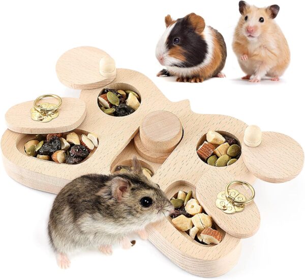 FELISTORY Wooden Foraging Toy for Small Pet – 4 in 1 Interactive Hide Treats Puzzle Snuffle Game, Mental Stimulation Toy for Guinea Pig,Rabbit,Hamster,Hedgehog, Chinchilla, Mouse,Rats,Sugar Gilders