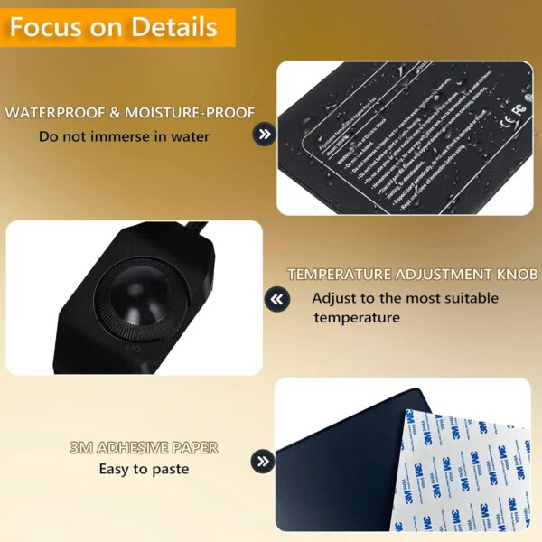 IMPROVED SAFETY DESIGN – The temperature can be adjusted by turning the knob and the maximum heating temperature can reach 45°C-50°C (113°F-122°F). The heating mat has a built-in temperature sensor, when the heating pad’s surface temperature reaches the threshold value, the heating pad will stop working. Wait for the temperature to drop before restarting work to ensure the safety of the heating mat. Please Note: No digital display on the knob.