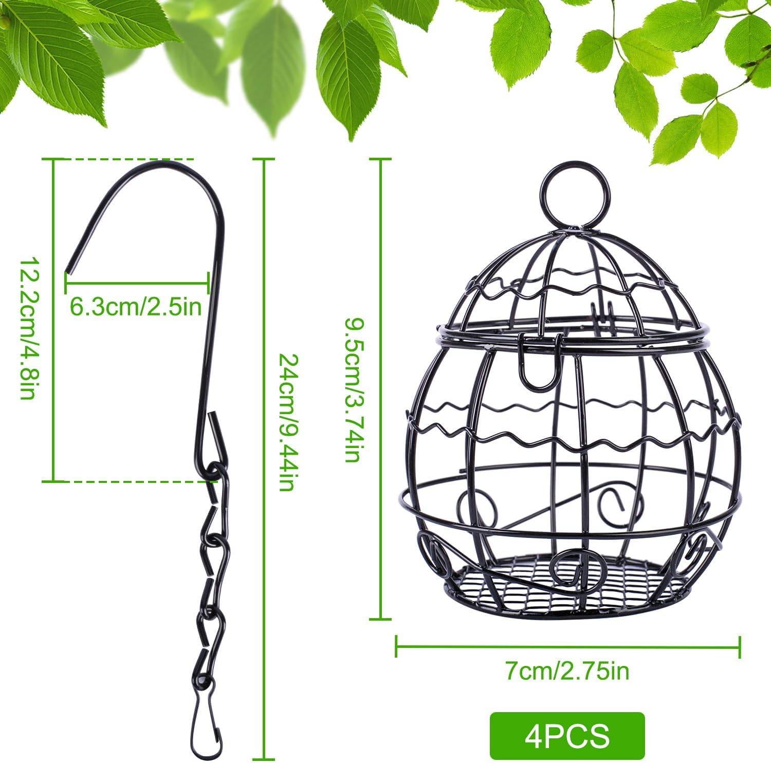 Fzyisw 4Pcs Fat Ball Feeder, Bird Feeders Hanging, Metal Fat Ball Bird Feeder Holder with 4 S-Shaped Hooks, Fat Ball Feeder for Feeding Outdoor Garden Wildlife Birds