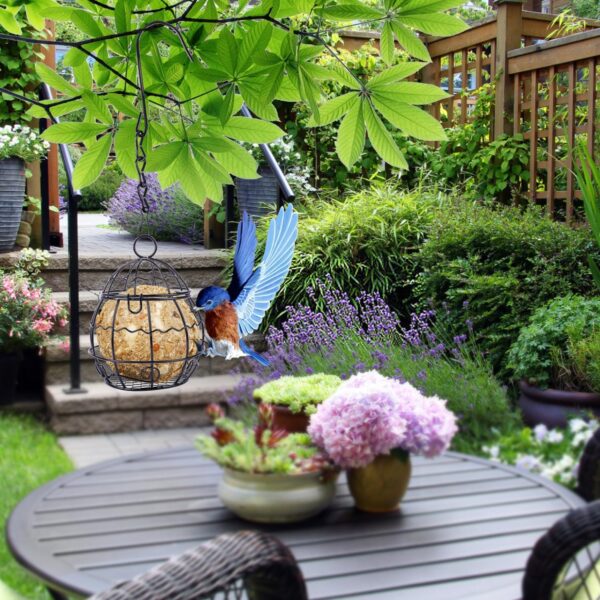 ?【Metal Bird Feeder】Fat ball feeders hanging is made of high quality metal material, tight seams, not easy to deform, has strong load capacity and can withstand high temperatures and bad weather, can be hung outdoors for a long time.