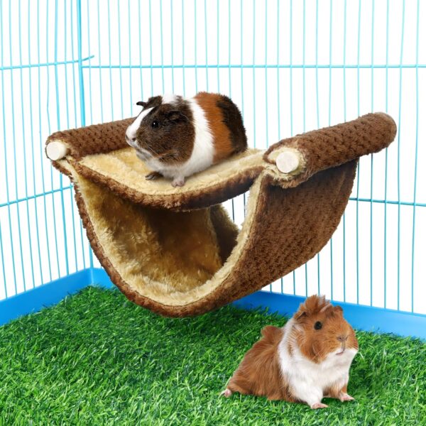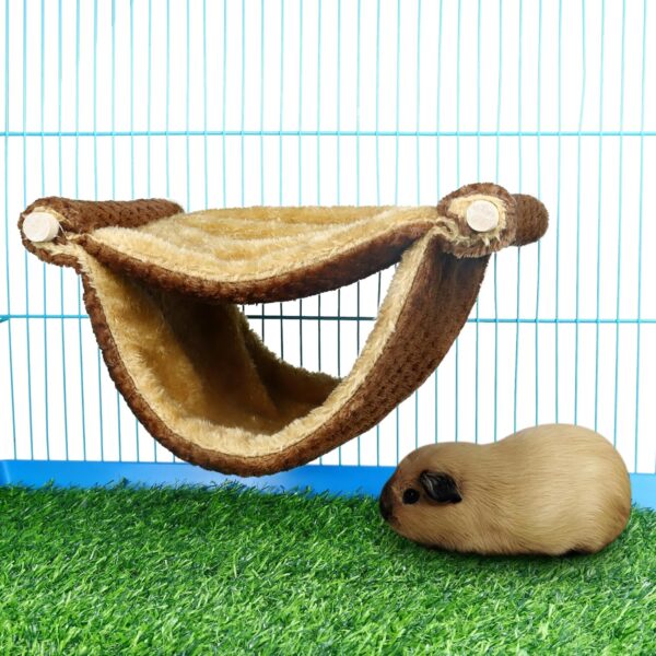 Hamster Hammock House, Guinea Pig Bed Hideout,Mouse Rat Hanging Swing Winter Warm Bed Small Pet Animal Double Layer Cage Tent Hut Nest for Mouse Rat Hamster Playing Sleeping (Brown)