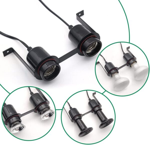 Suitable for use with E27 standard bulbs such as ceramic heat lamps, basking light, tanning backlights, UVA/UVB lamps, nightlights,etc..