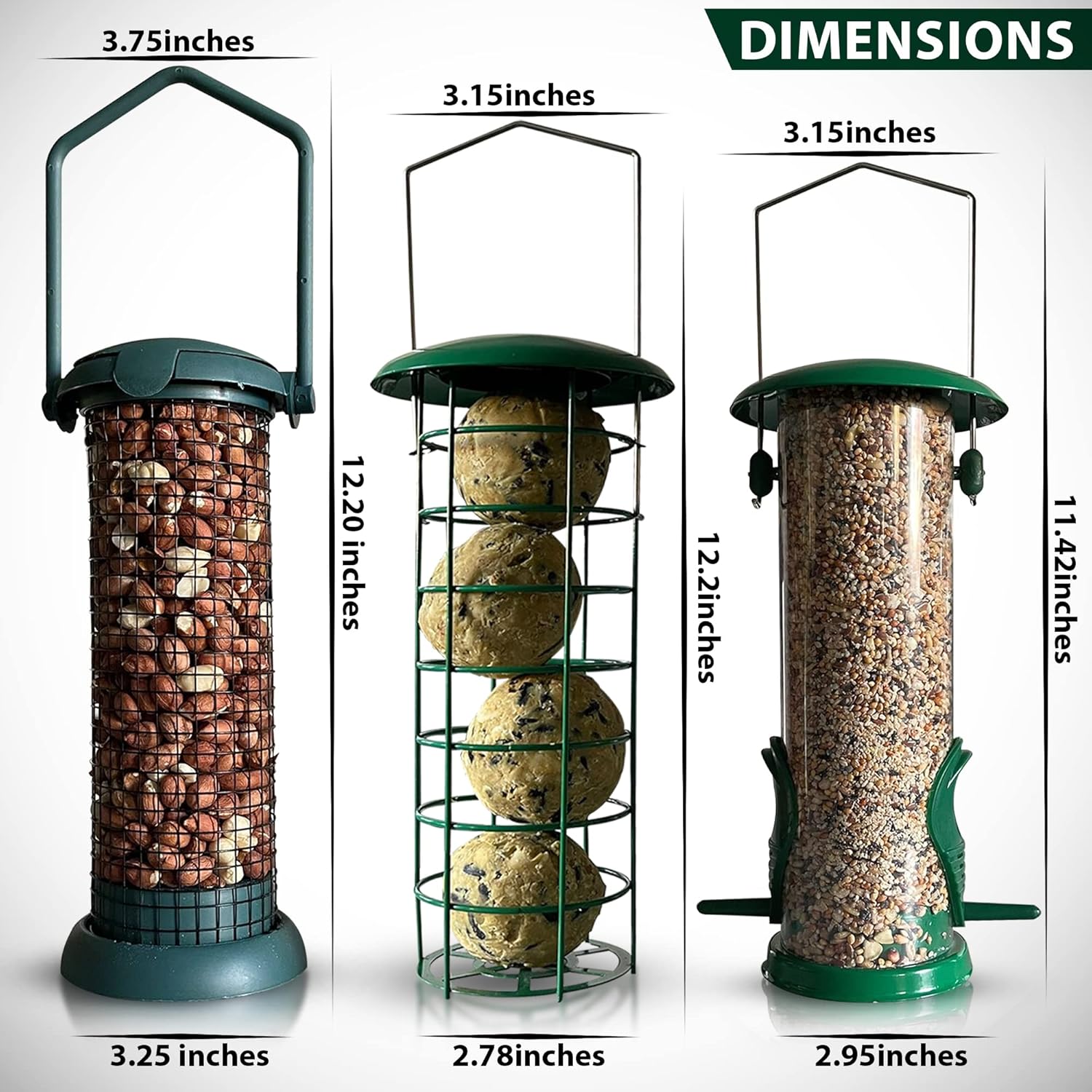 Home-Ed Hanging Bird Feeders for Small Birds Pack of 3 – Wild Bird Seed Feeder – Multiple Size Feeders, Premium Quality & Sleek Design – Bird Feeder Station