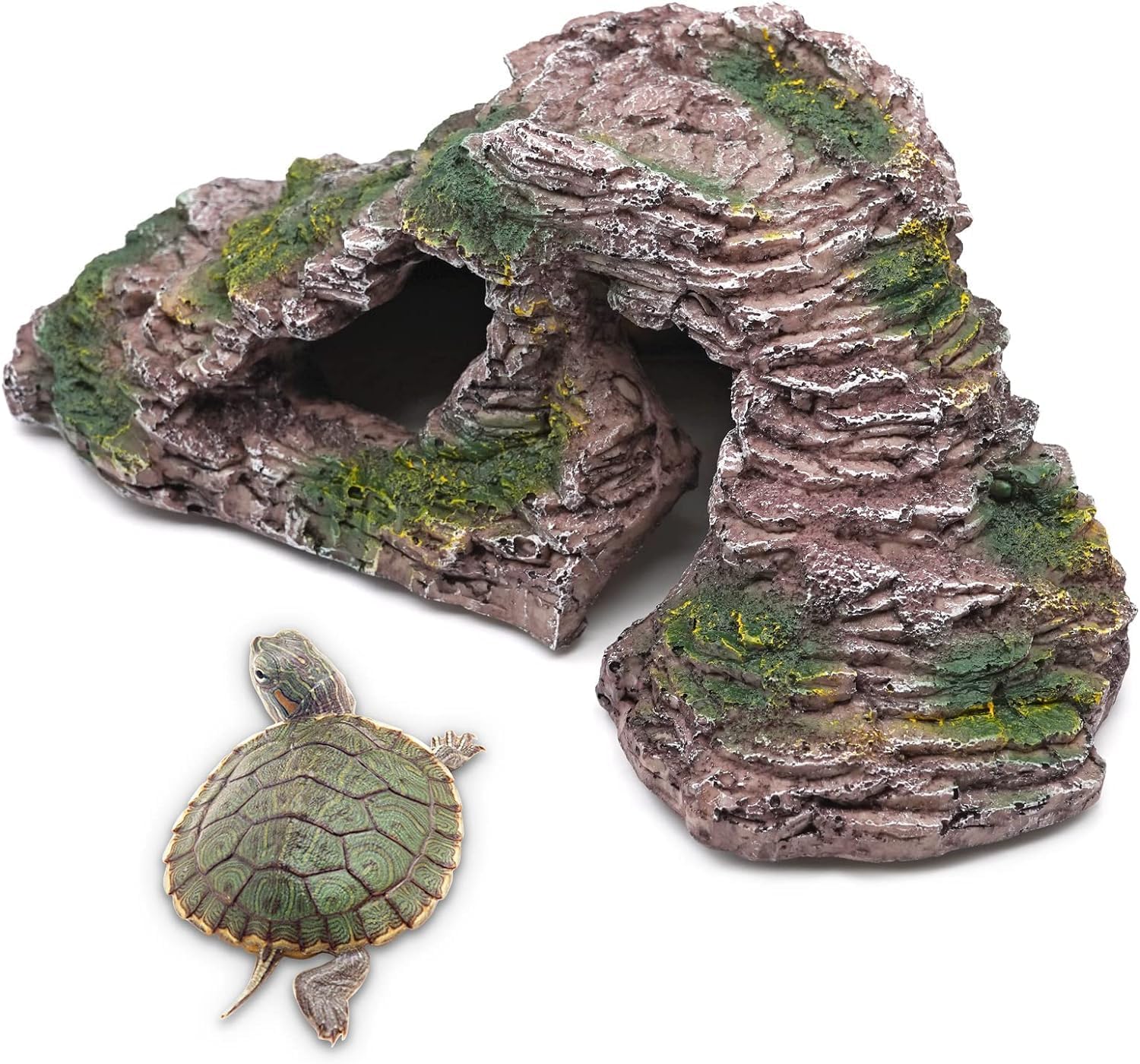Junniu Reptile Shale Scape Step Ledge Ramps Aquarium Decor Basking Platforms Hide Cave Rock for Leopard Gecko Turtle Newts Arboreal Herps Bearded Dragon Lizards, 12.4in Large Resin