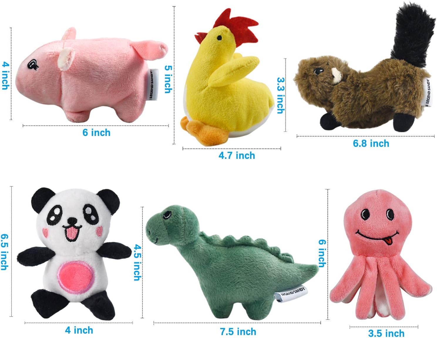 LEGEND SANDY Squeaky Plush Dog Toy Pack for Puppy, Small Stuffed Puppy Chew Toys 6 Dog Toys Bulk with Squeakers, Cute Soft Pet Toy for Small Medium Size Dogs