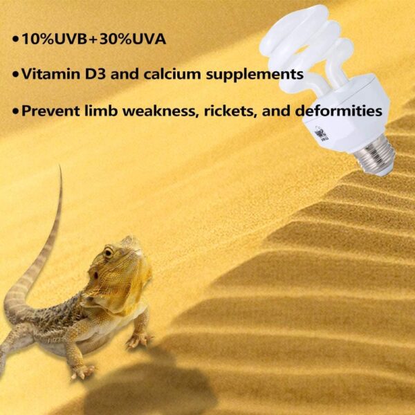 ?Perfect desert uvb reptile light: 10% UVB and 30% UVA output.No harmful UVC output. E27 socket, can be used directly.