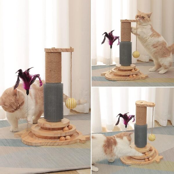 Marchul 5 in 1 Cat Toys, Cat Sisal Rope Scratching Post with Hanging Ball, Interactive Track Toy Ball for Cat with Springy Feather, Cat Massaging Scratch Post for Indoor Playing