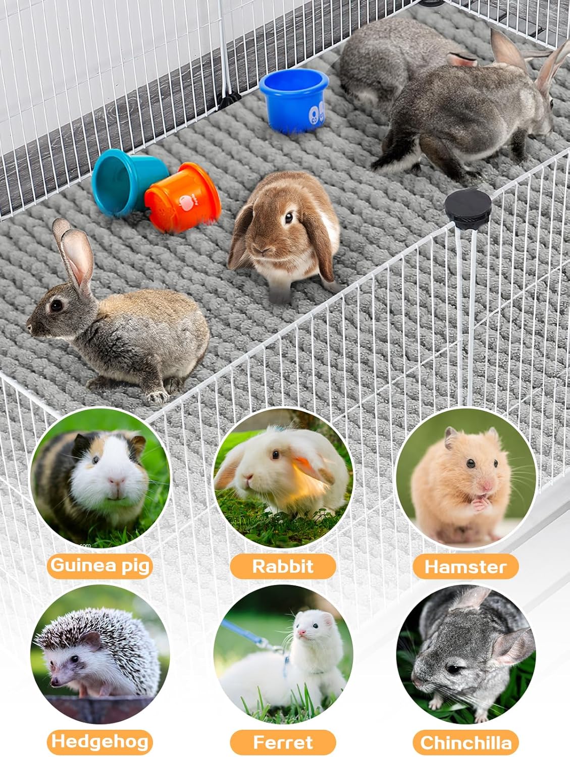 Wide Application: This rabbit mats are used for guinea pig cages liner or pee pad, can also for rabbits, hamsters, chinchillas, hedgehogs, ferrets and other small pets. This multi-functional mats can make them live a comfortable and safe life.