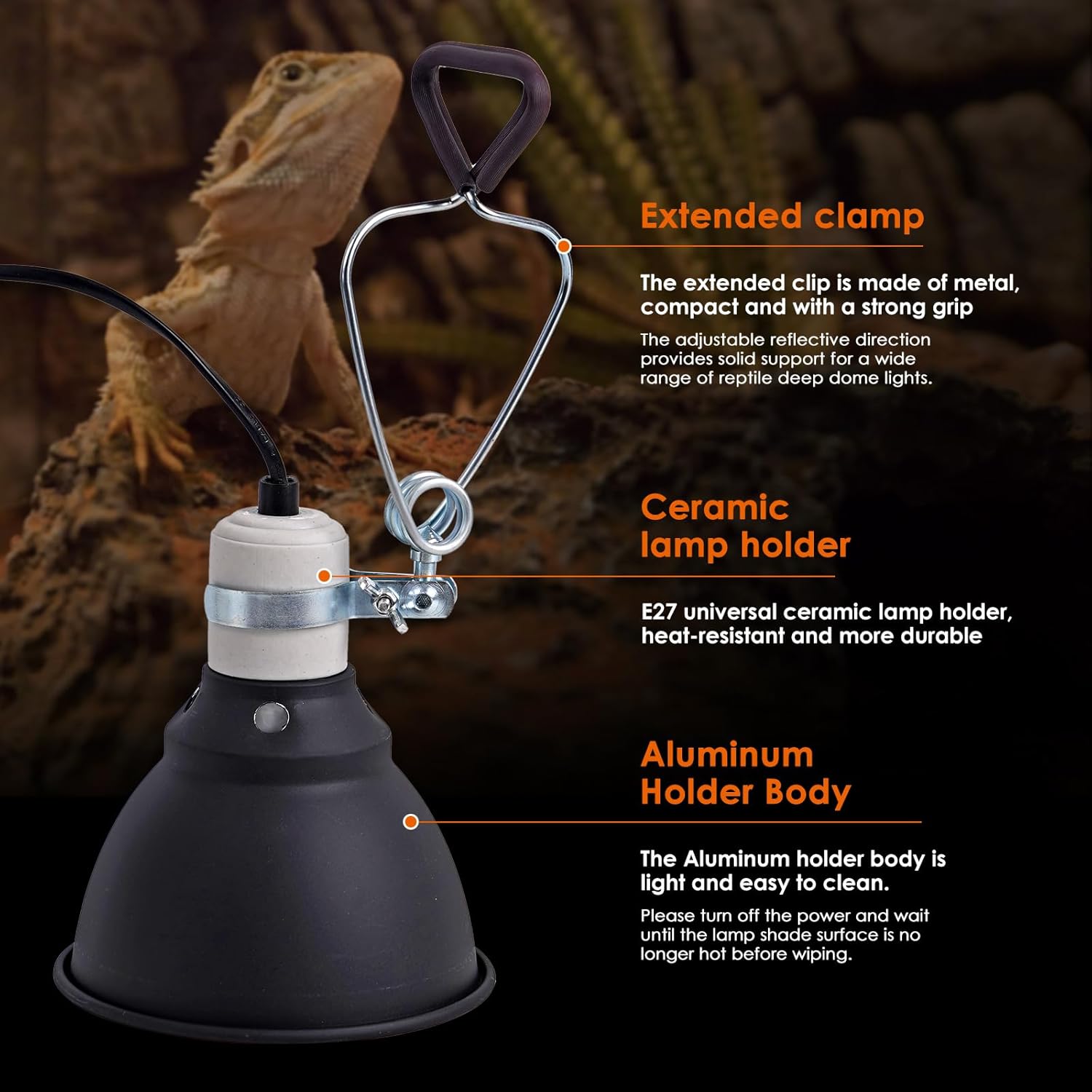 MOGOULUA Reptile Heat Lamp Holder with Adjustable Clip 5.5 Inch E27 Lamp Holder Terrariums Heat Lamp Adapter Reptile Tank Deep Dome Heat Lamps Guard for Bearded Dragon Tortoise Lizard