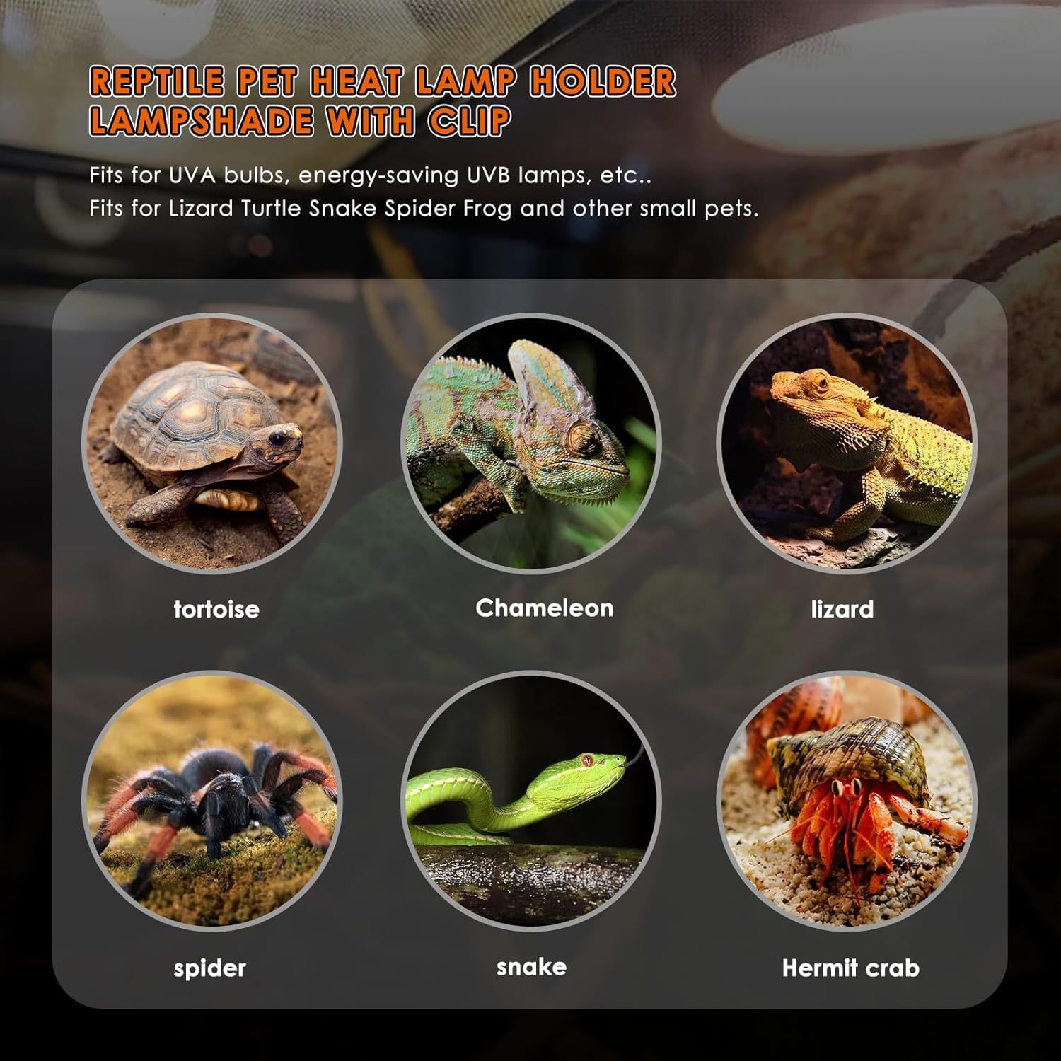 【WIDELY APPLICATION】This reptile warm lampshade is perfectly used for all kinds of reptiles, turtle, snakes, lizards, spiders, tortoises, frogs, chicks, quails brood, hedgehogs, hamsters and other pets. Keep a constant warmth through a whole winter.