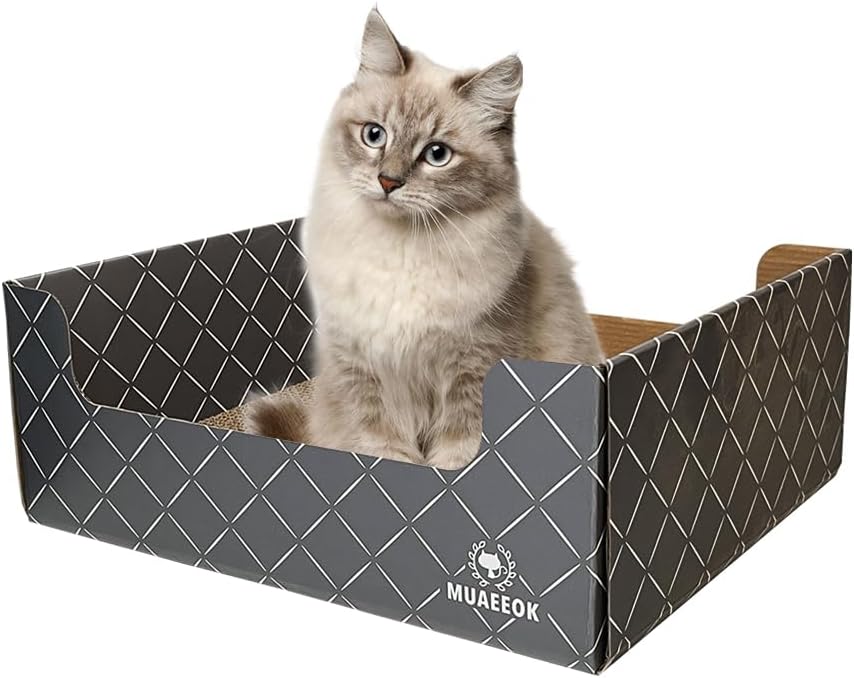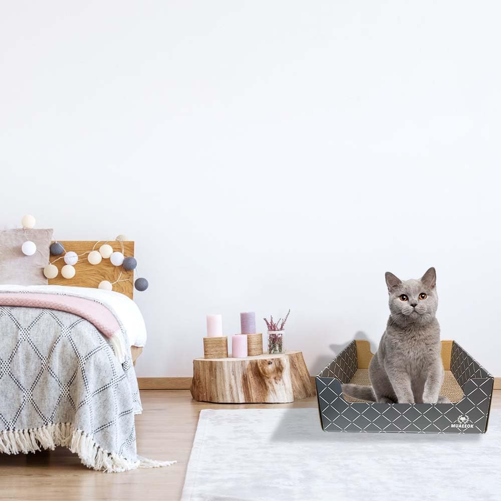 MUAEEOK Cardboard Cat Scratcher Extra-Large Heavy Duty and Lounger Box with Refillable Scratch Pad Durable Recyclable and Reversible Cardboard Cat Scratching Pad for Rest and Play (Dark Grey)