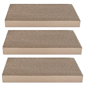 SCRATCH AND PLAY: Make your cat and yourself happy with this set of 3 cardboard scratch boards. The board provides a surface that deters cats from ruining furniture and keeps cats entertained.