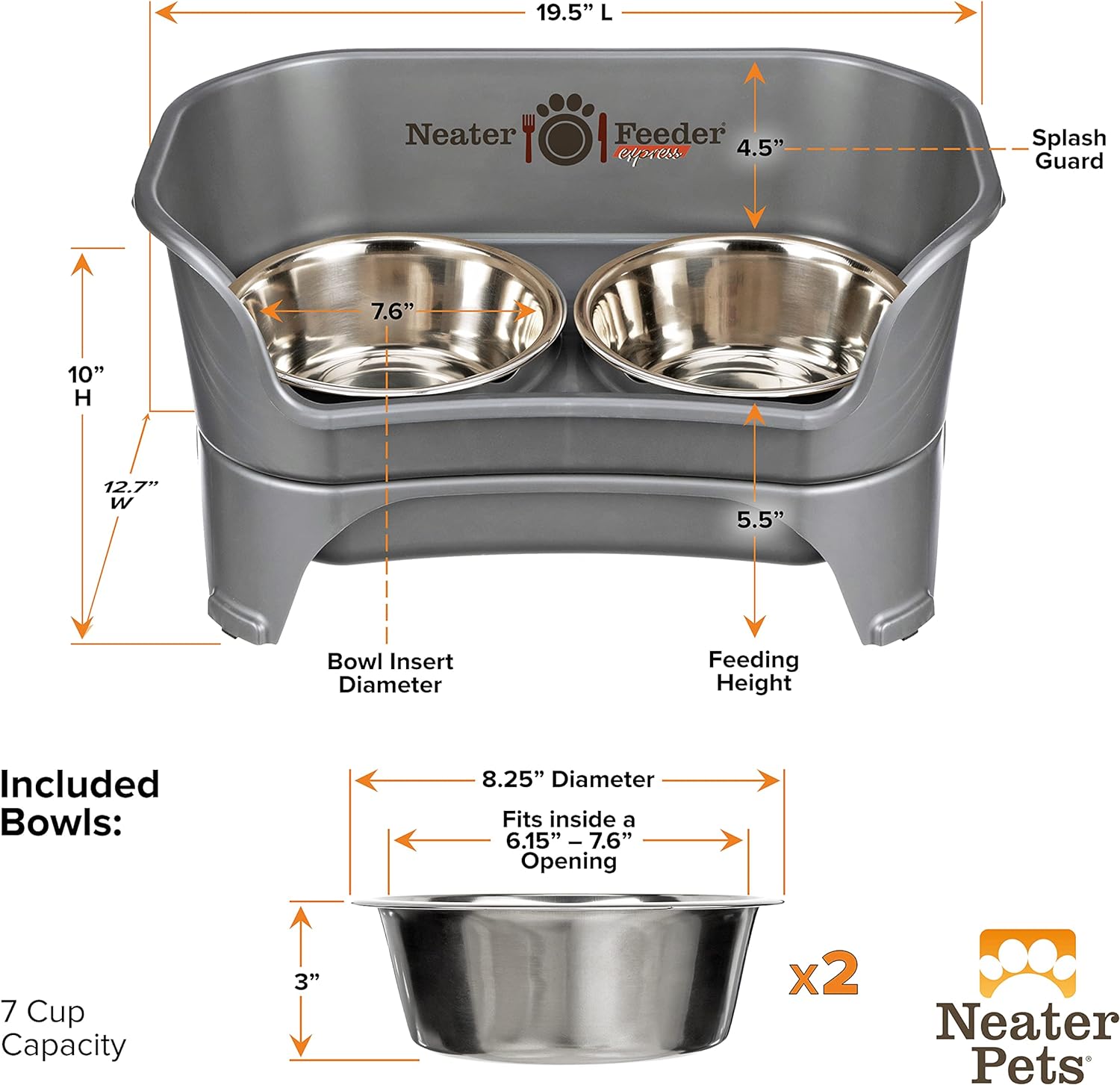 Neater Feeder Express Elevated Dog Bowls by Neater Pet Brands – Dog Bowls with Stand – Stainless Steel Food and Water Raised Bowl Set for Medium to Large Dogs, Gunmetal