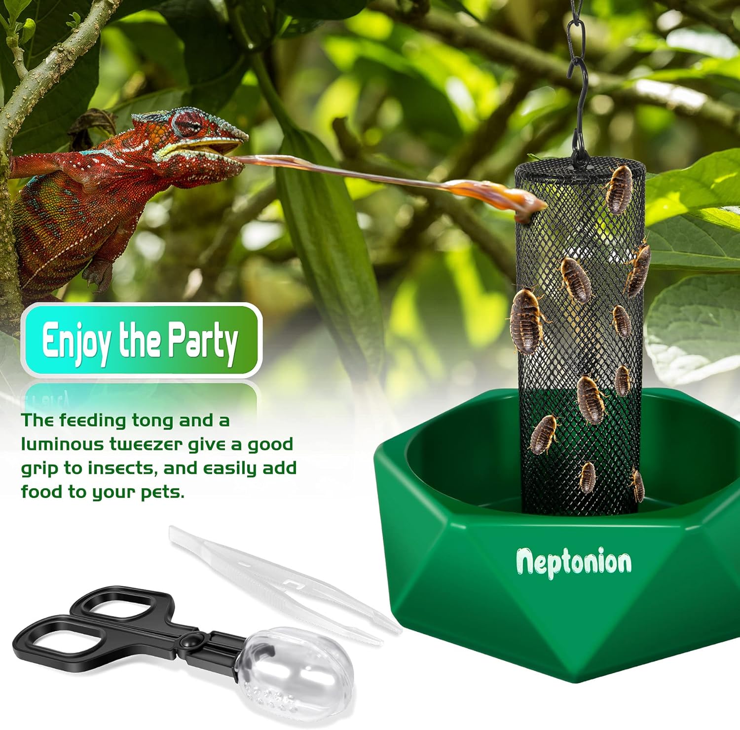 NEPTONION Hookable Chameleon Feeding Bowl Bugs Bar with Column for Prey to Climb and Move, Suitable for Lizard, Bearded Dragon, Iguana, Gecko, Toad, Frog