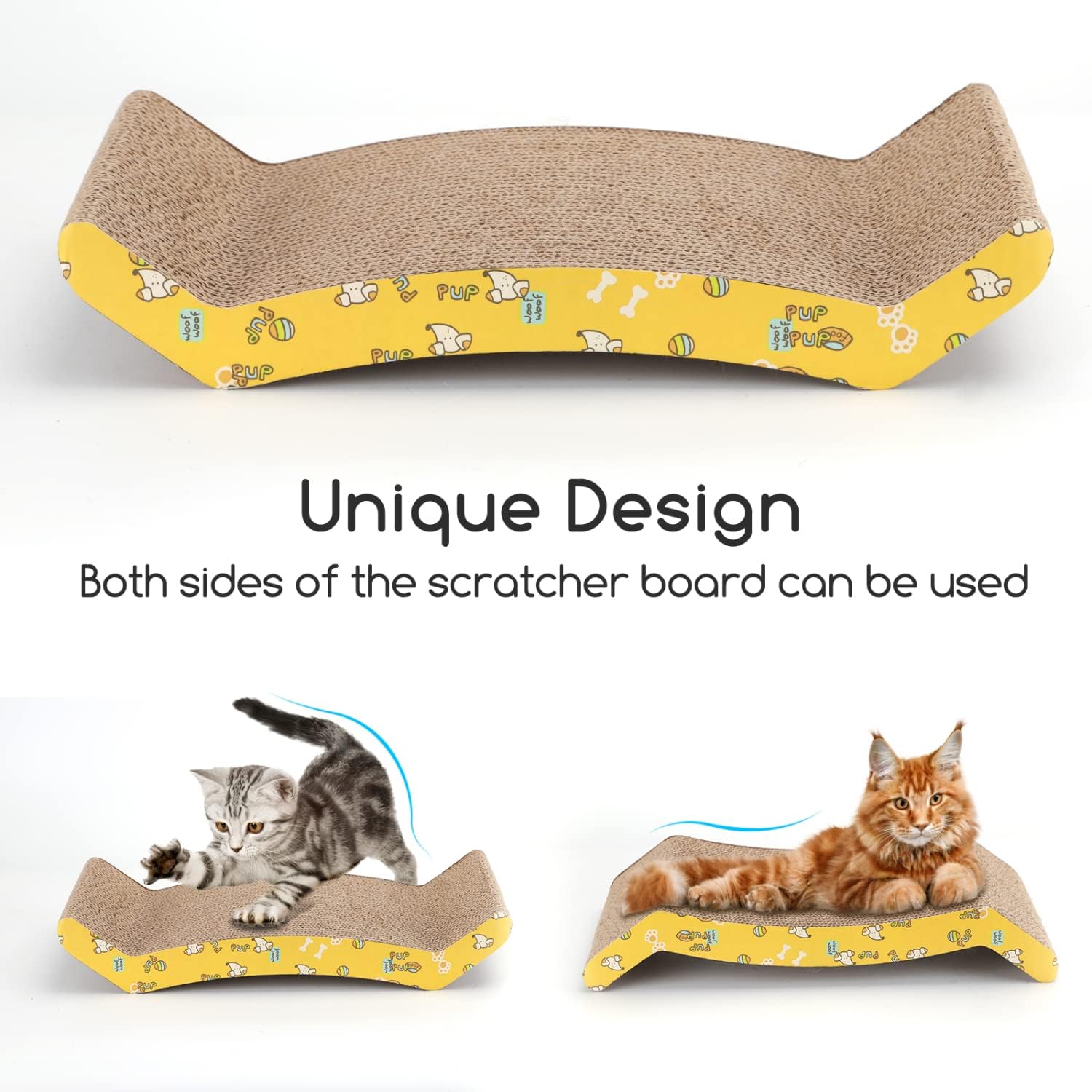 ?【Curved Shape】Unique curve shape design make the cat scratcher could be used as a cat scratch pad for scratching, a cat sofa for resting and playing, a cat bed for sweet dreams.