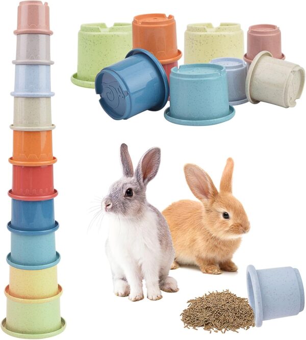 ?Widely Applicable: Our stacked cups are not only designed for rabbits, but also very popular among other pets. It is very suitable for rabbits to throw, push, and forage. You can use it to pack snacks for little rabbits, such as dog food, diced carrots, dried fruits, or vanilla.
