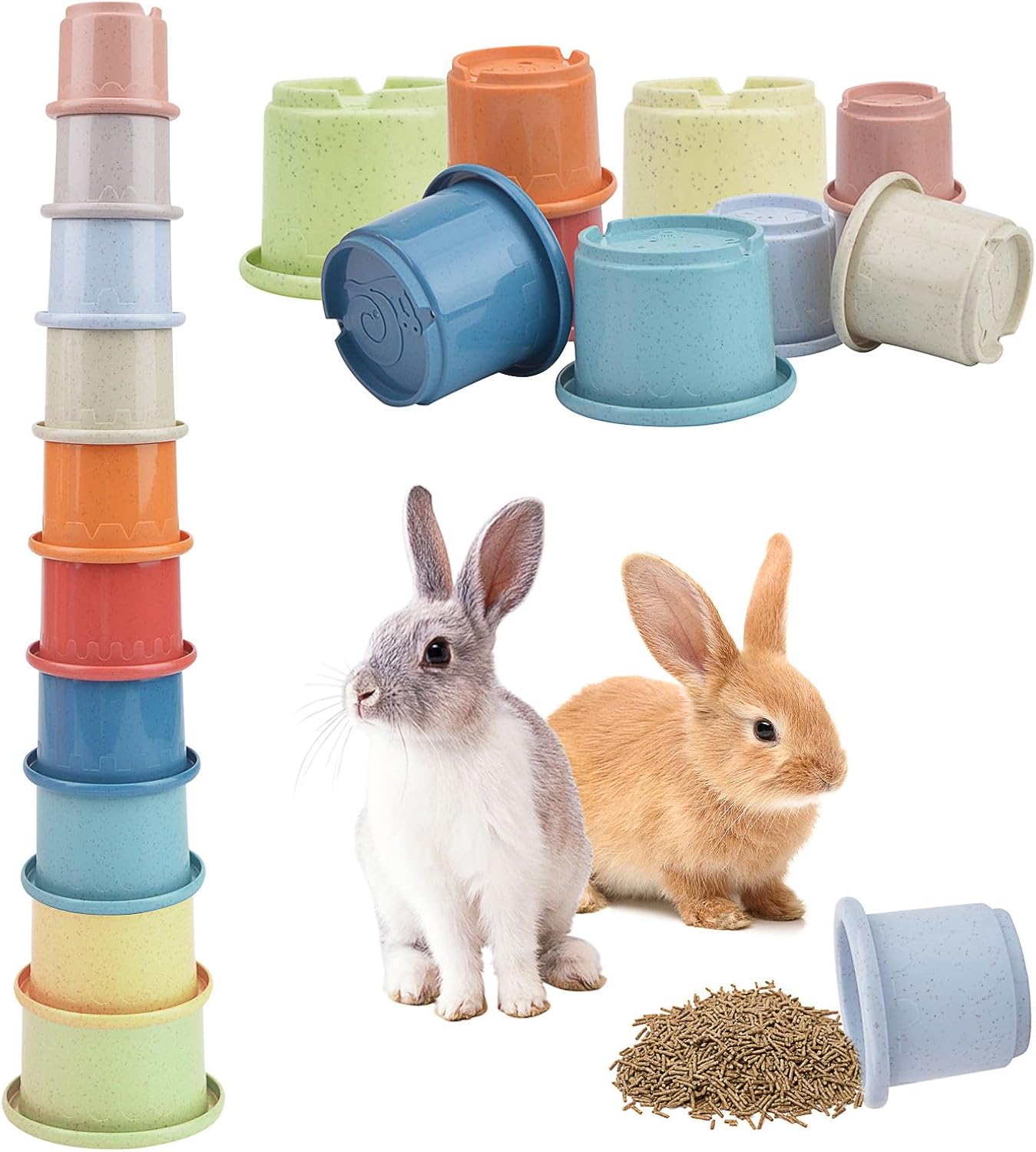 OdiuK 10 PCS Stacking Cups for Rabbits, Multicolored Stacking Cups Toy Bpa-Free Safe Plastic Pet Toys, Small Animals Bunny Foraging Rabbit Toys for Rabbits Hiding Food and Playtime Fun(Various Sizes)