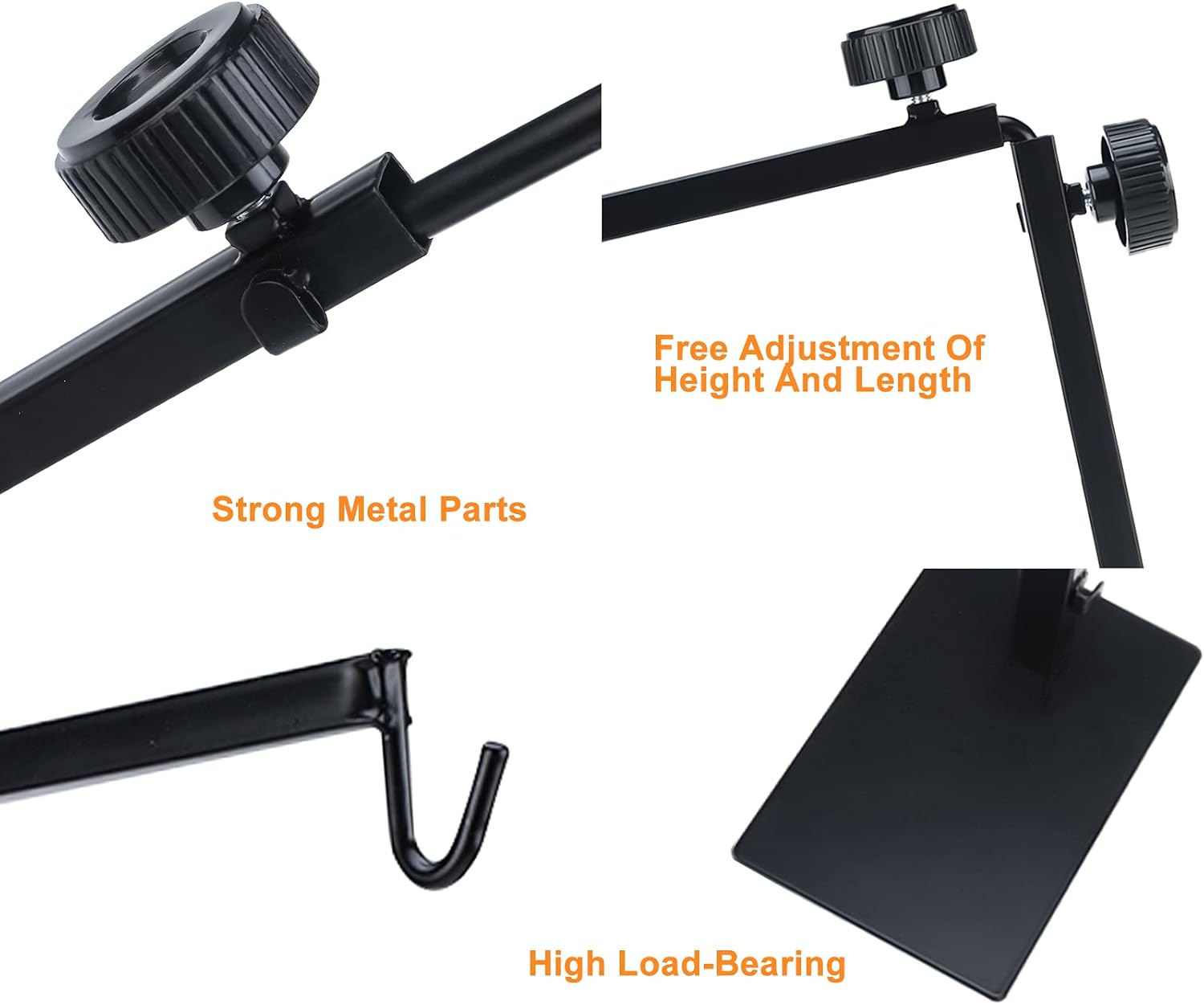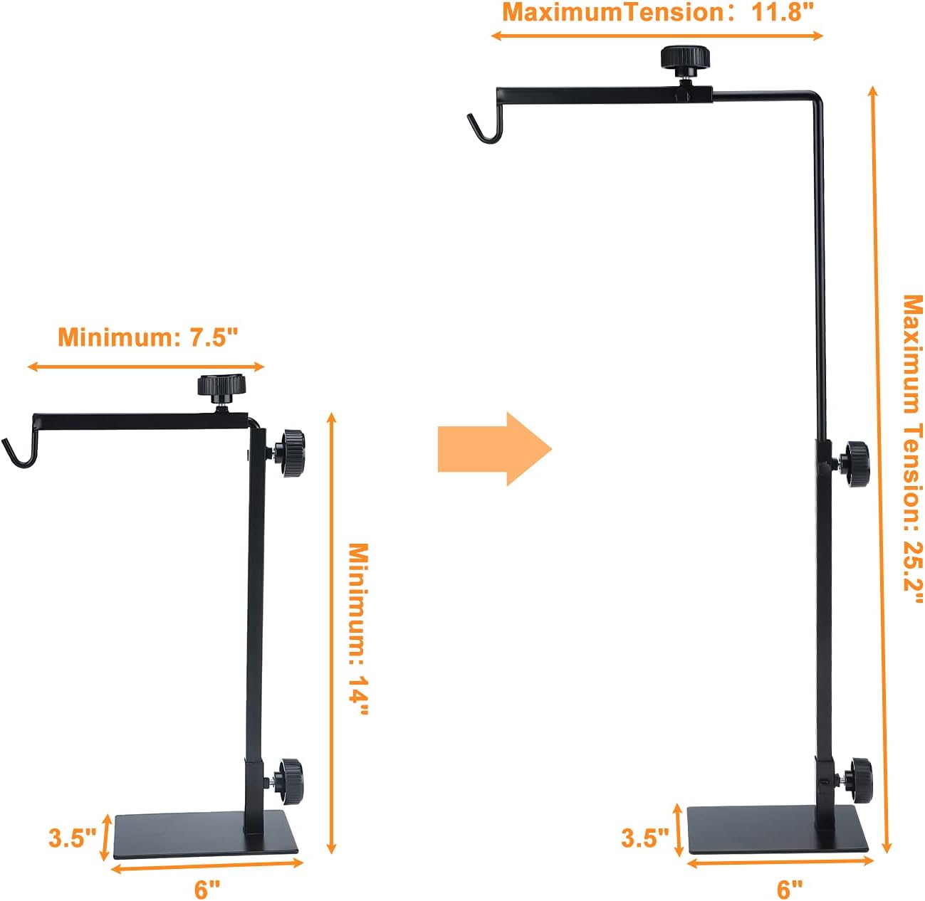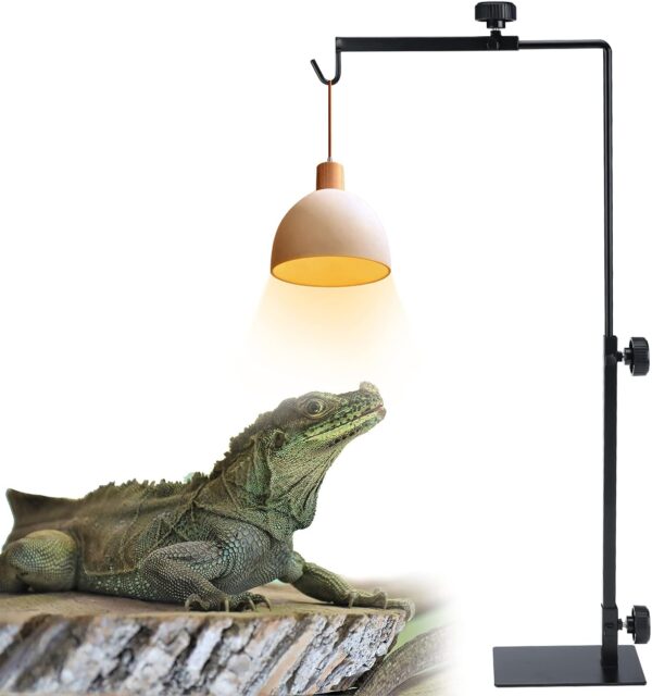 Size Adjustable: Reptile lamp stand vertical rod adjustable from 14” to 25.2”, horizontal rod adjustable from 7.5” to 11.8”, to set the best distance between the heat lamp and the reptile as needed.