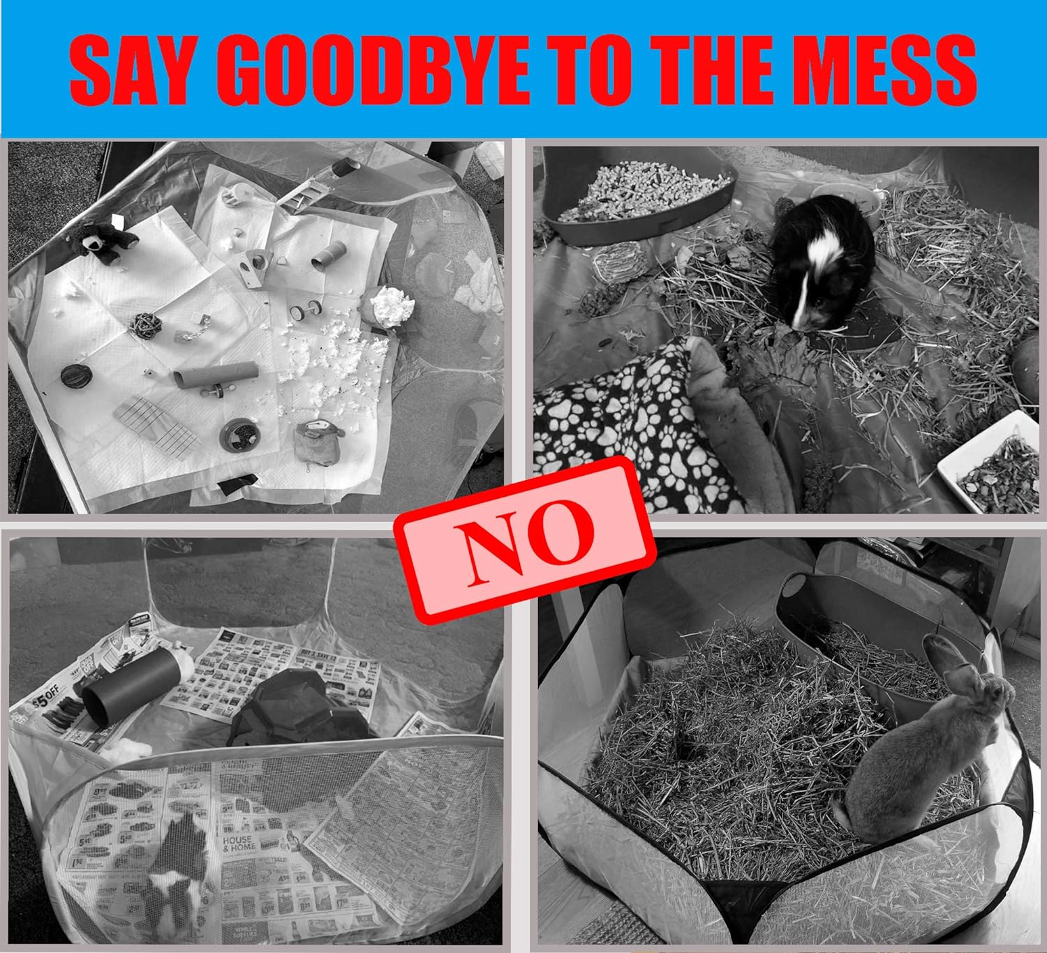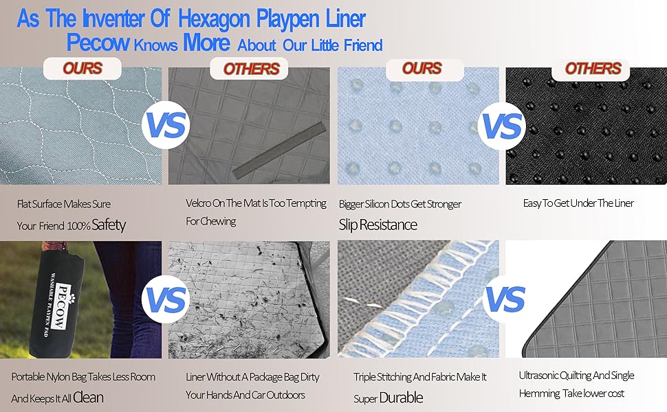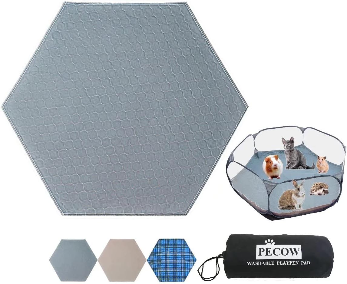 【SPECIALLY DESIGNED FOR SMALL ANIMAL PLAYPENS】Pecow playpen pad is in a regular hexagon with sides 23.9〞long which perfectly fit most portable playpens for small animals like hamster,Guinea Pig,rabbits,bunny,cats,chinchillas,ferrets, hedgehog,gerbils,squirrel,kitty,mouse,rat,lizard,bearded dragon,small reptile and so on