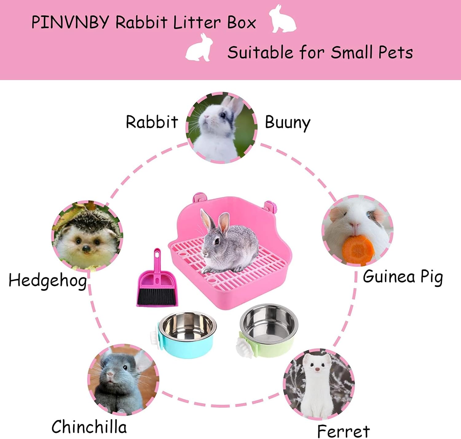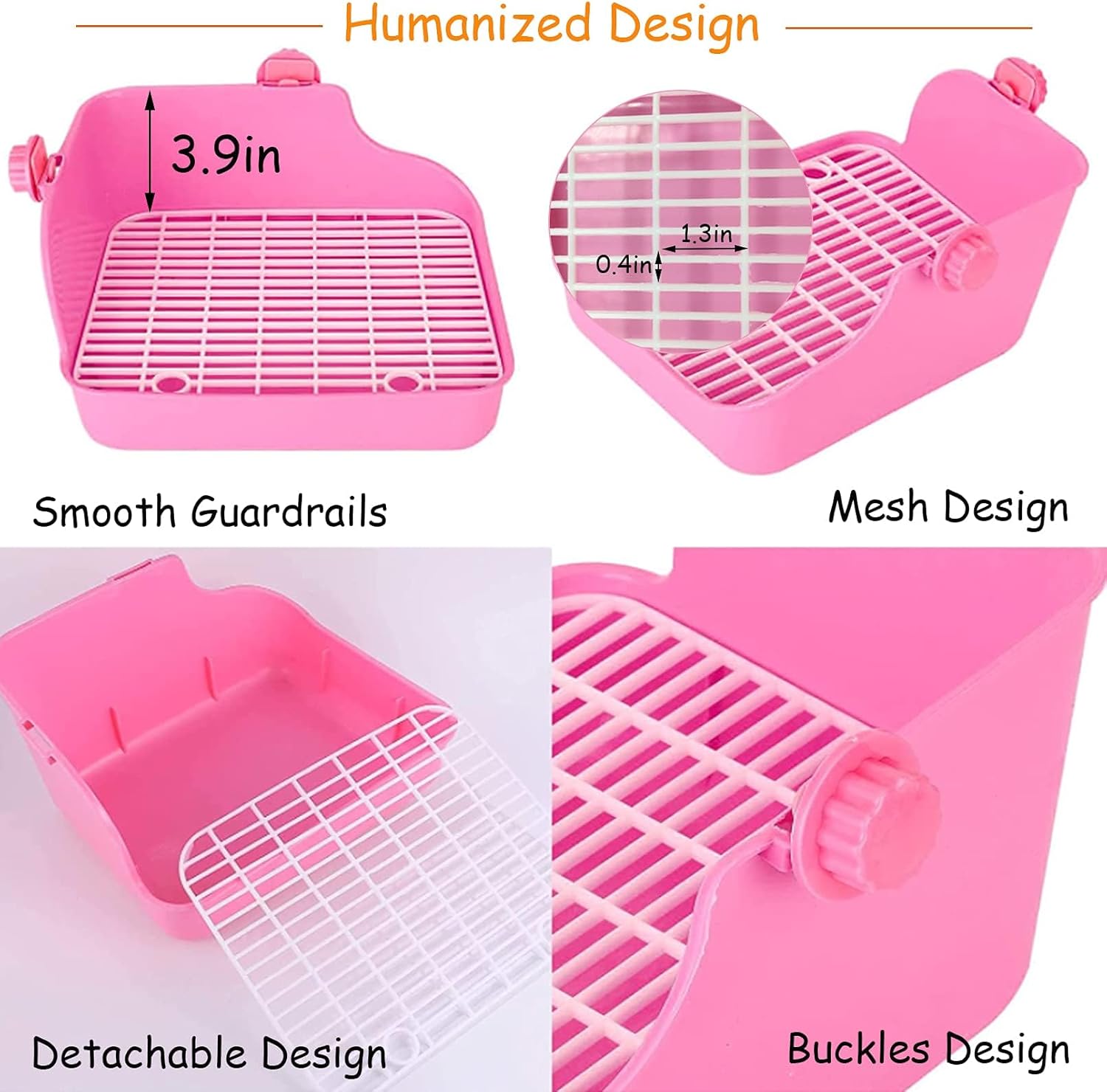 PINVNBY Rabbit Litter Box for Cage Bunny Corner Litter Bedding Box Small Animal Litter Pan Hanging Pet Bowls Cage Potty Trainer Pet Toilet for Rabbit Bunny Guinea Pigs Small Animals(Pink)