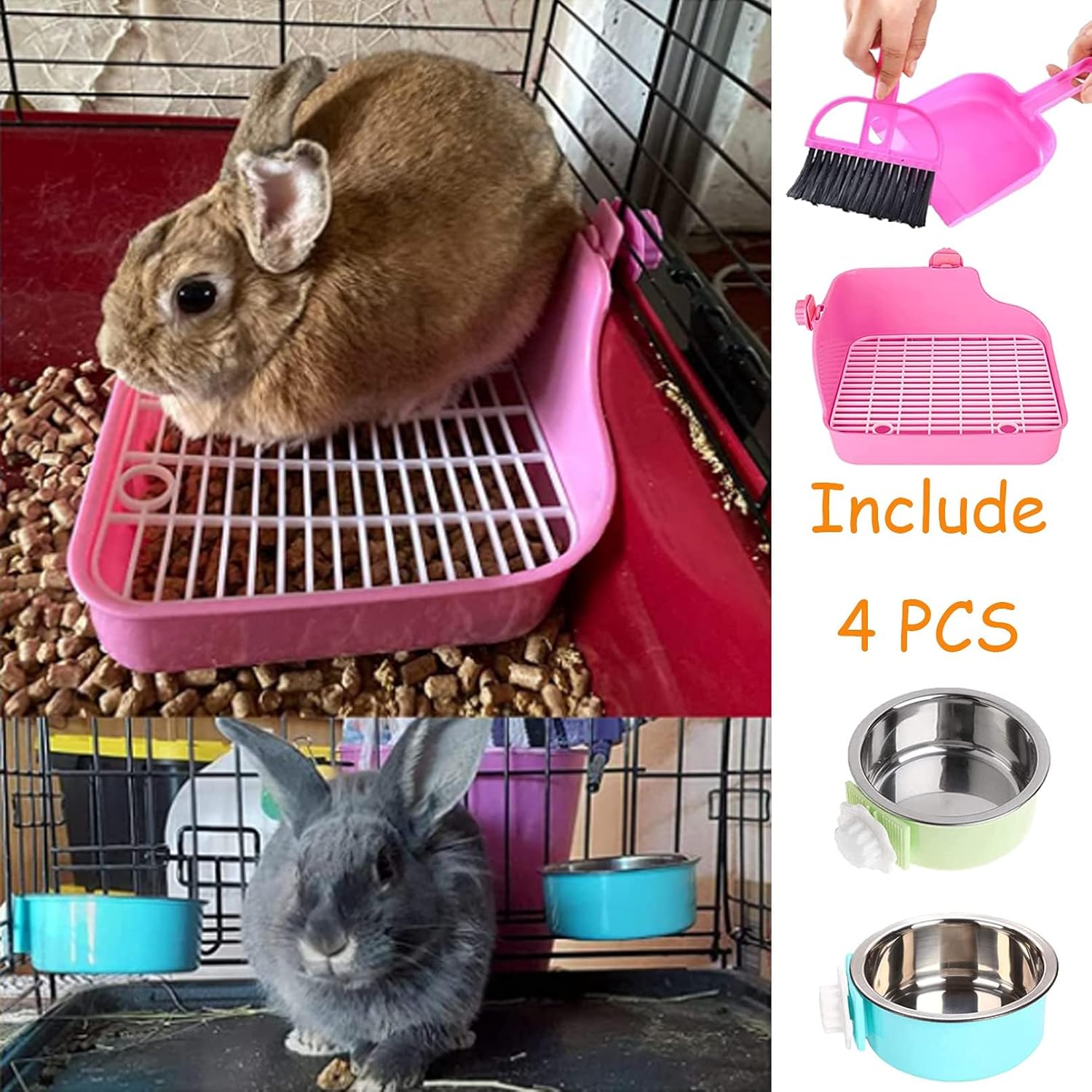 PACKAGE: The package includes 1 x corner litter box, 2 x rabbit bowls, a small broom and dustpan set. Meet your pet’s daily eating, drinking and playing needs.