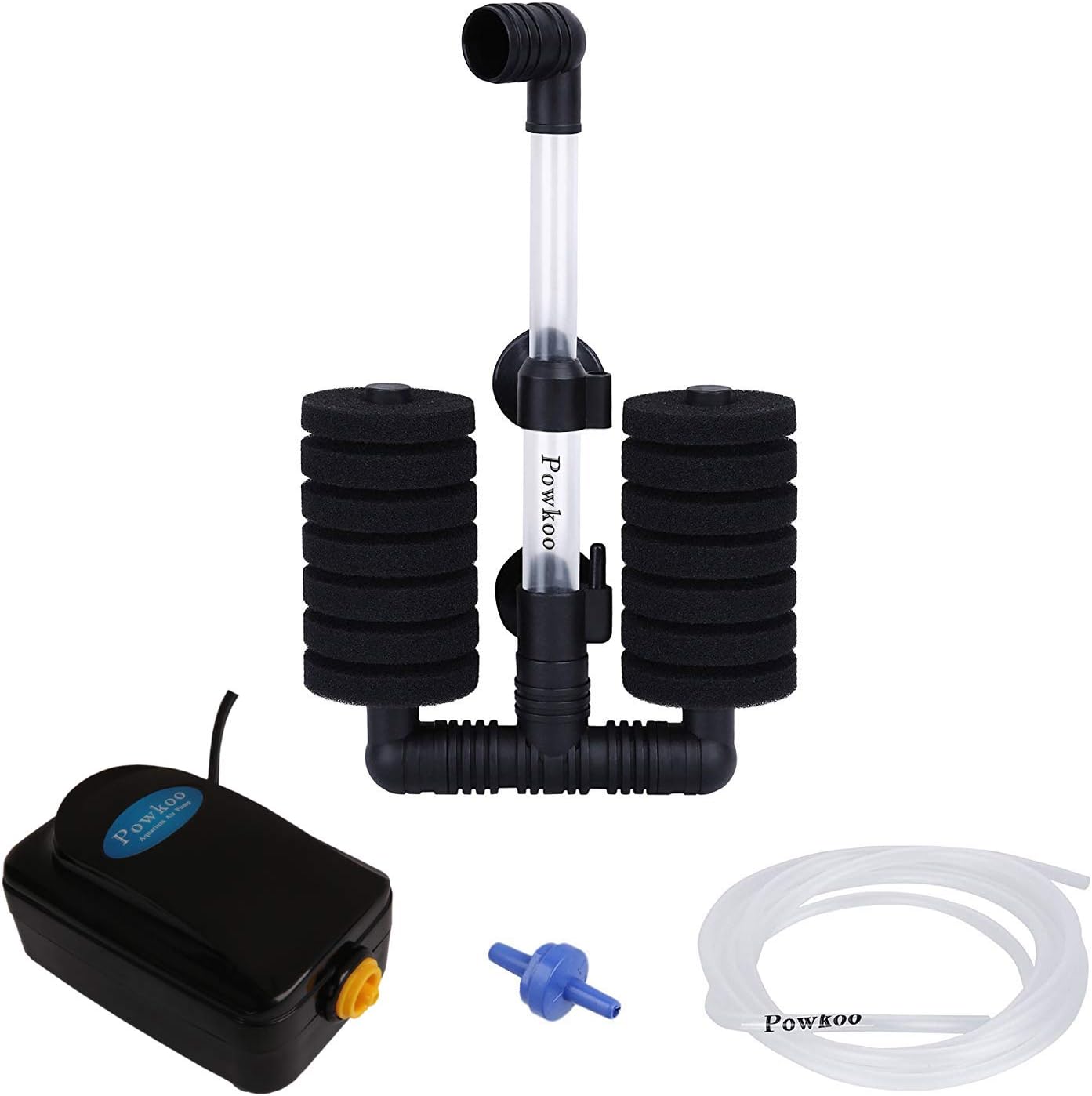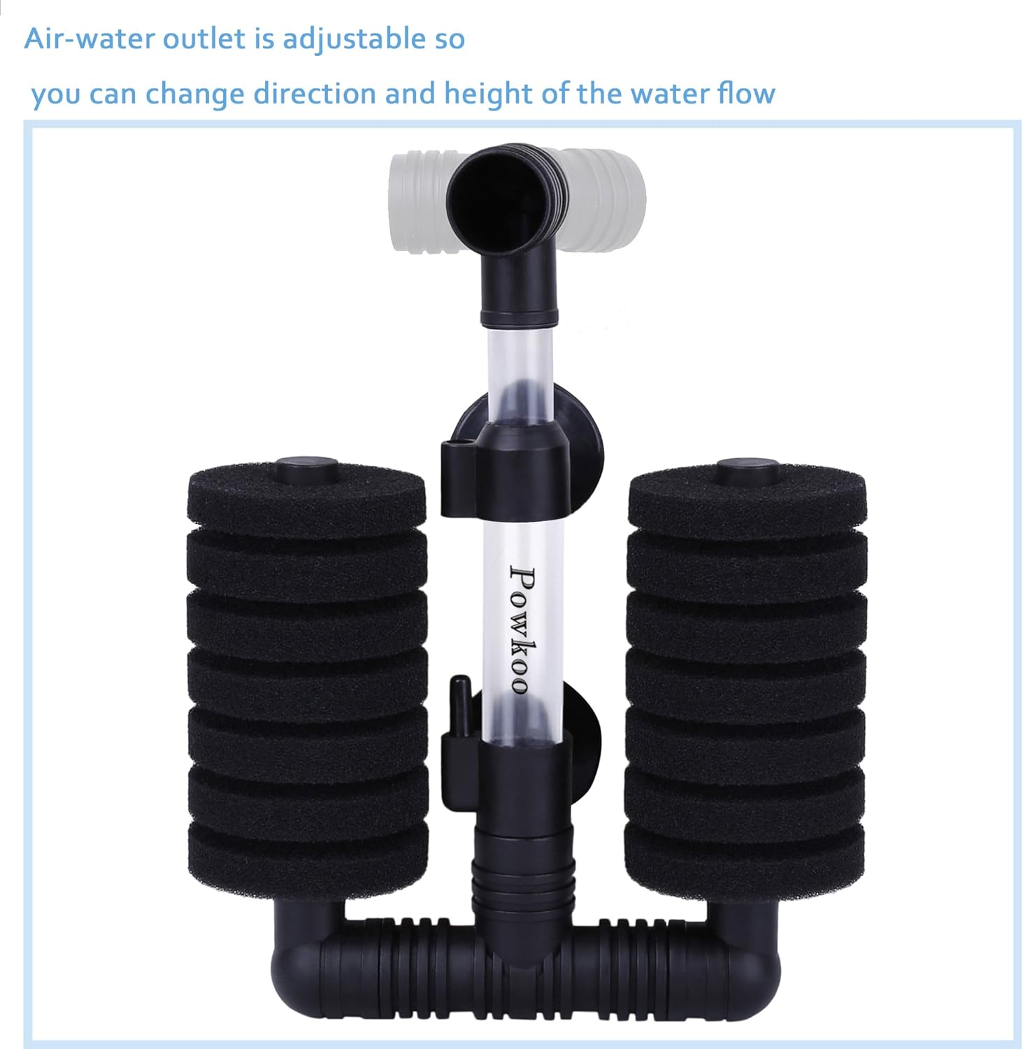 Powkoo Double Sponge Filter Aquarium Air Filter Bio Filter Sponges for Bettas Shrimp Breeder Fish Tank (Aquarium Set)