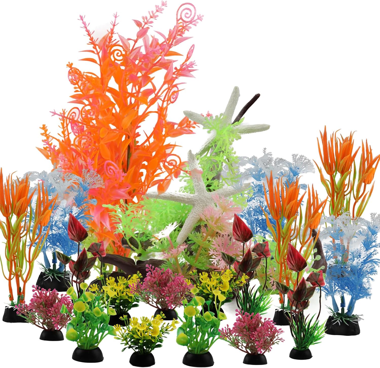 Package includes: 21 Pieces assorted Heights plastic aquarium plants: Various Heights 4 to 24 cm.
