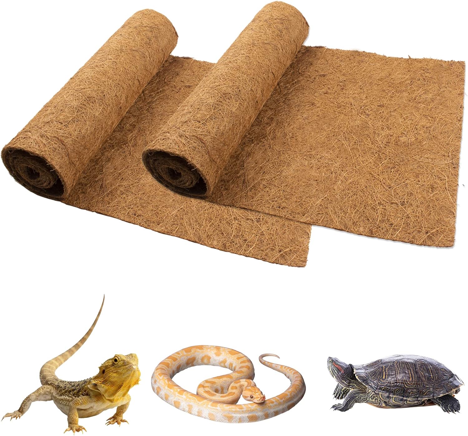 Reptile Carpet Coconut Fiber, 2 Pack 100*30cm/40*12 inches Natural Reptile Carpet Terrarium Liner Bedding Reptile Substrate Mat Supplies for Bearded Dragon Leopard Gecko Iguana Lizard Snake Turtle