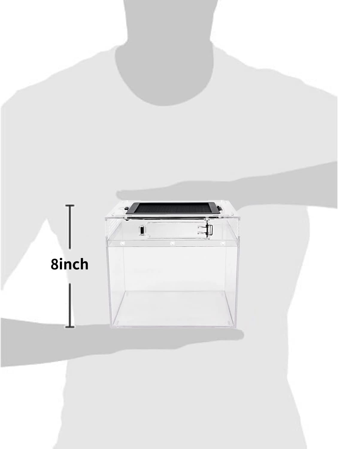 Reptile Growth Mini reptile tank(PC),8″ x 8″x 8″ vivarium with Top Sliding Door Screen Ventilation for Small Fish,Insect,Snail,Gecko,Tarantula,Bearded Dragon,Jumping Spider,Stick Insect
