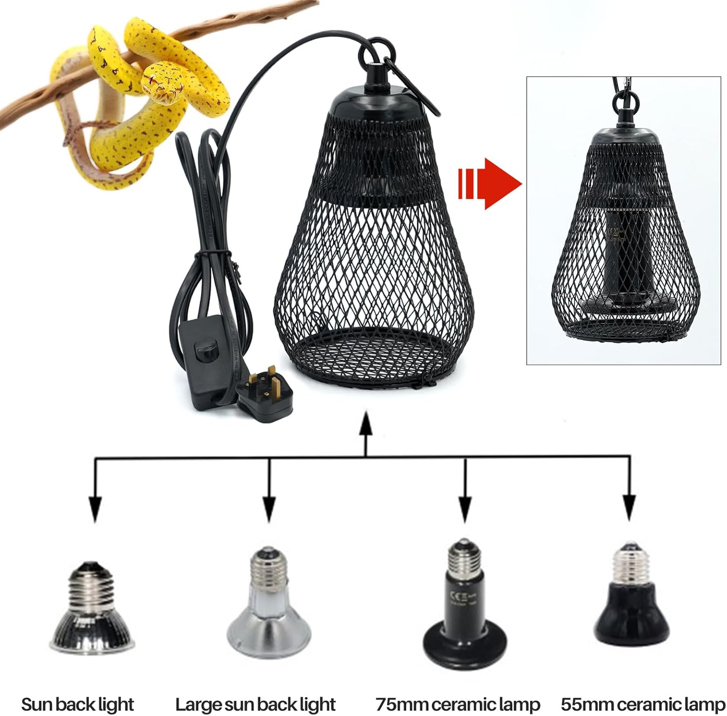 Reptile Heat Lamp Cap,Reptile Anti-Scald Lampshade and Ceramic Heat Emitter Set, Turtle Basking Heater Lamp with Guard for Lizard,Snake, Frogs,Chicken