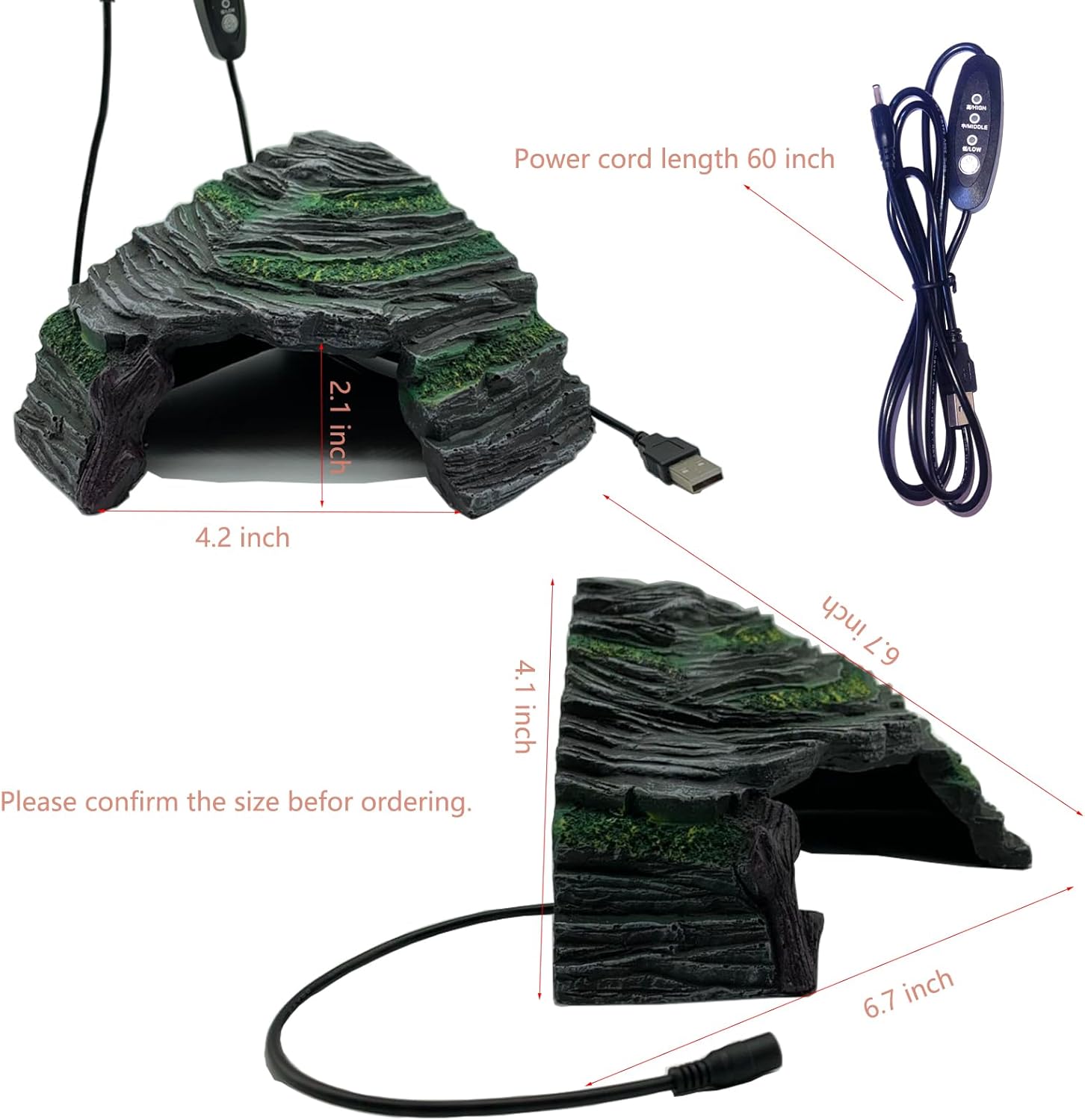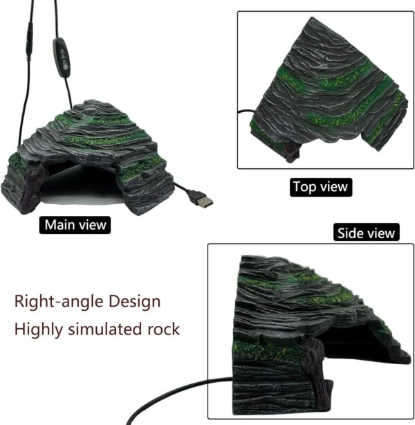 Easy to Use and Assemble: USB connector design for easy installation.Make it easy to heat up your reptile hide. The interior of rock hideaway cave is smooth,don’t have sharp edges, won’t scratch the small animals and easy to clean.