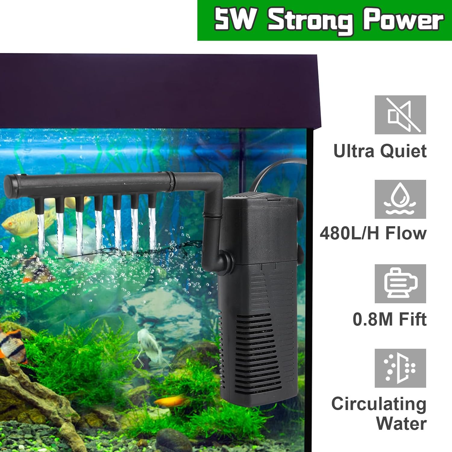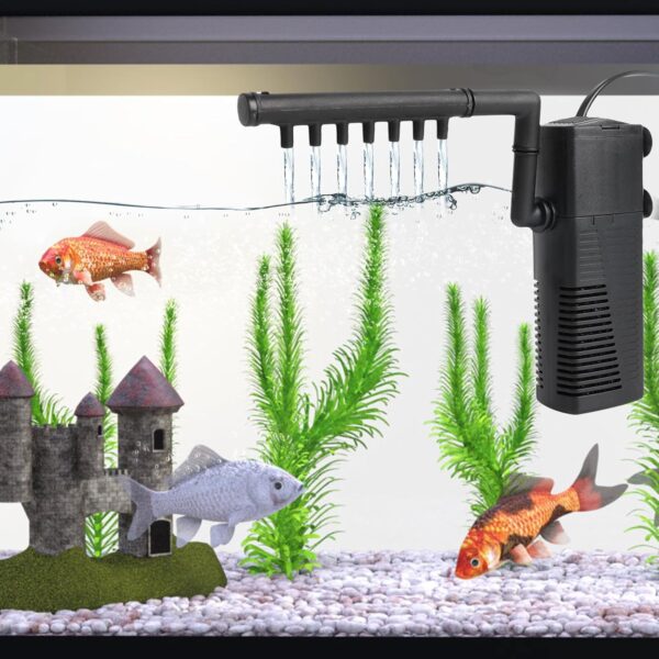 Rinwywey Fish Tank Filter, Internal Aquarium Filter with 480L/H, 5W Silent Fish Tank Filter Pump Fountain Water Pump and Oxygen Supply for Small Tank Up, Aquariums