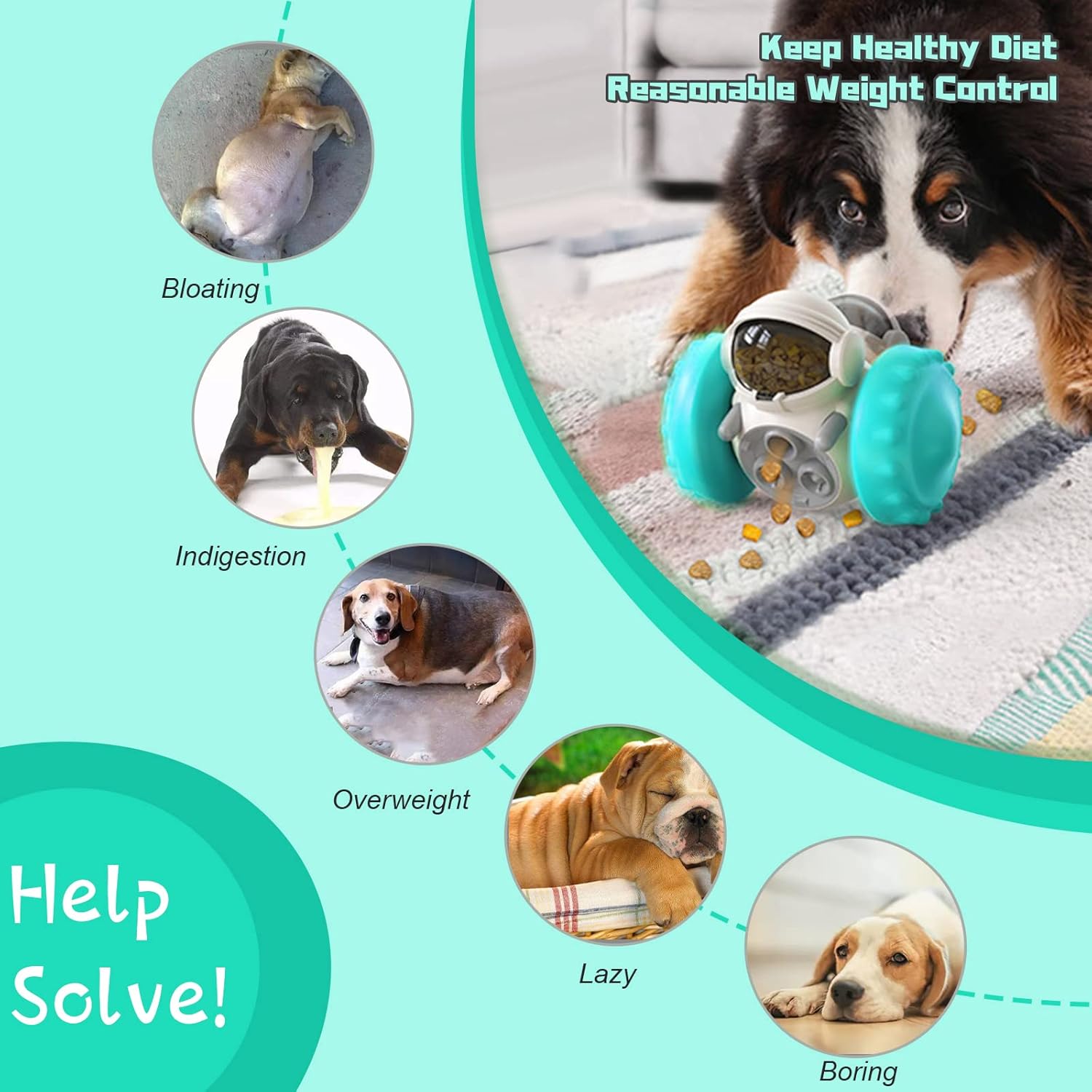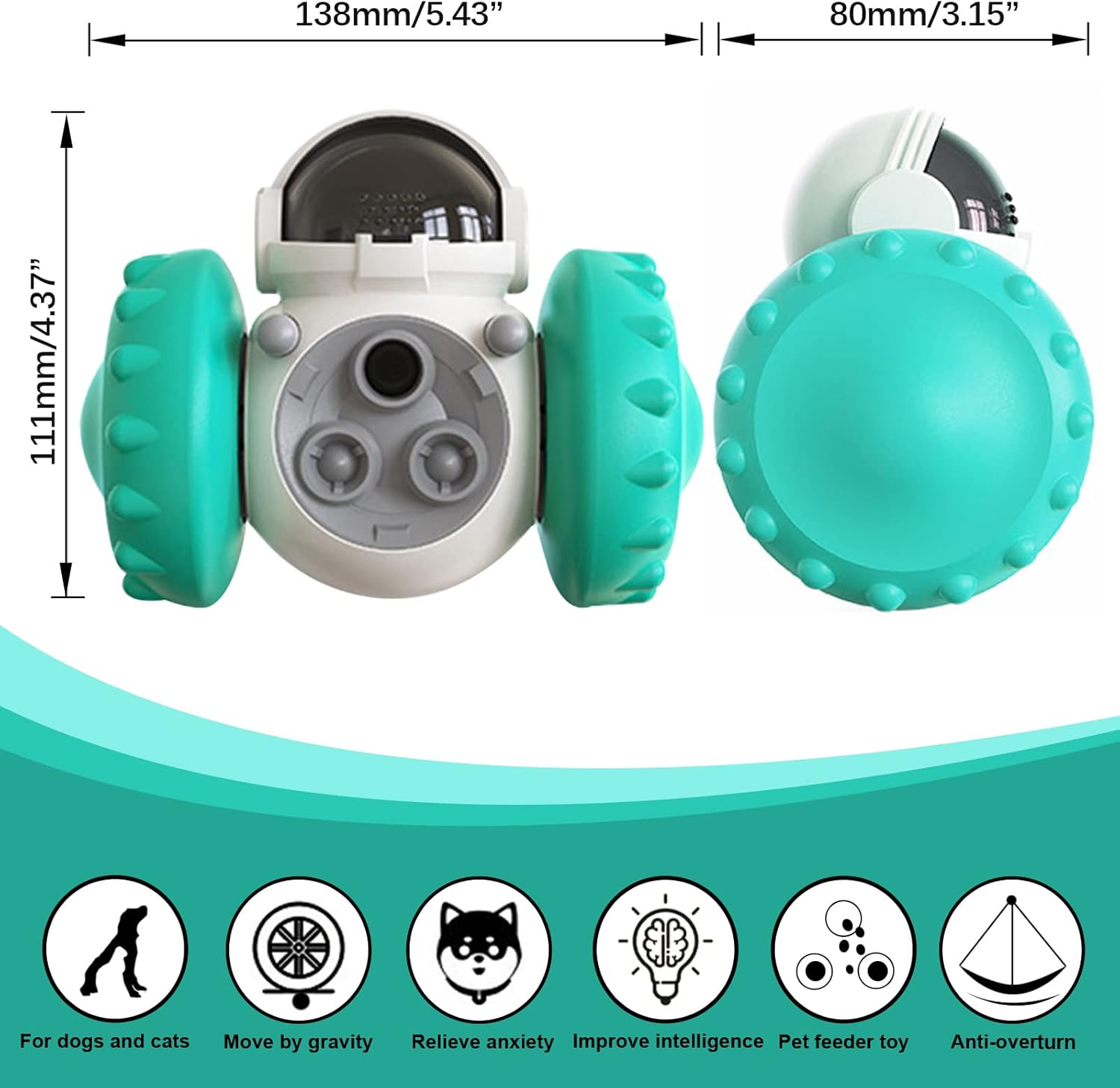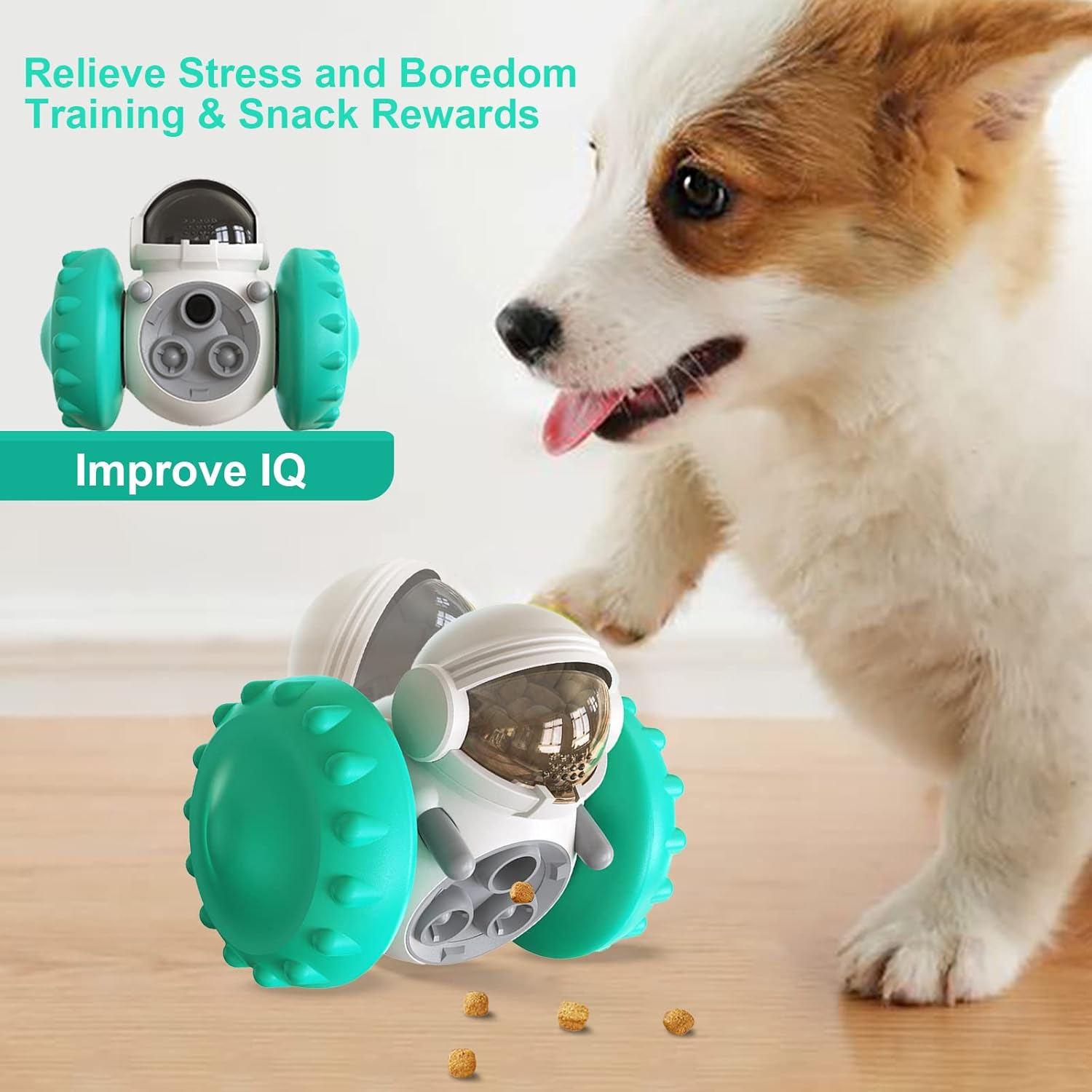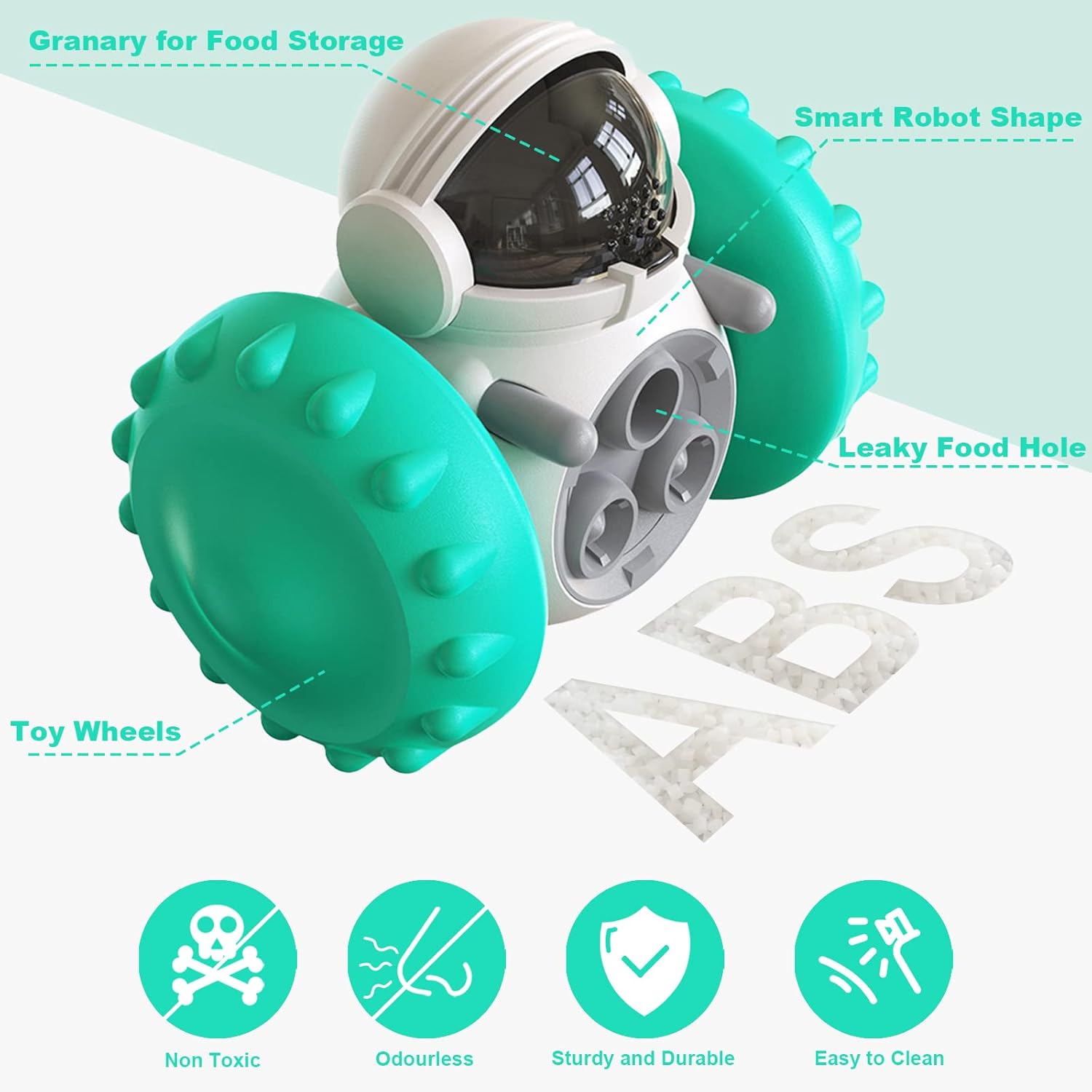 【Multifunctional Fun Dog Toy】Made from safe and environmentally friendly food-grade ABS material, this interactive dog toy features a self-balancing system on the inside, a fun wheel design and a smart robot look on the outside. The product is reinforced to prevent potential risks such as small parts falling off, making it sturdy and durable enough to play with.